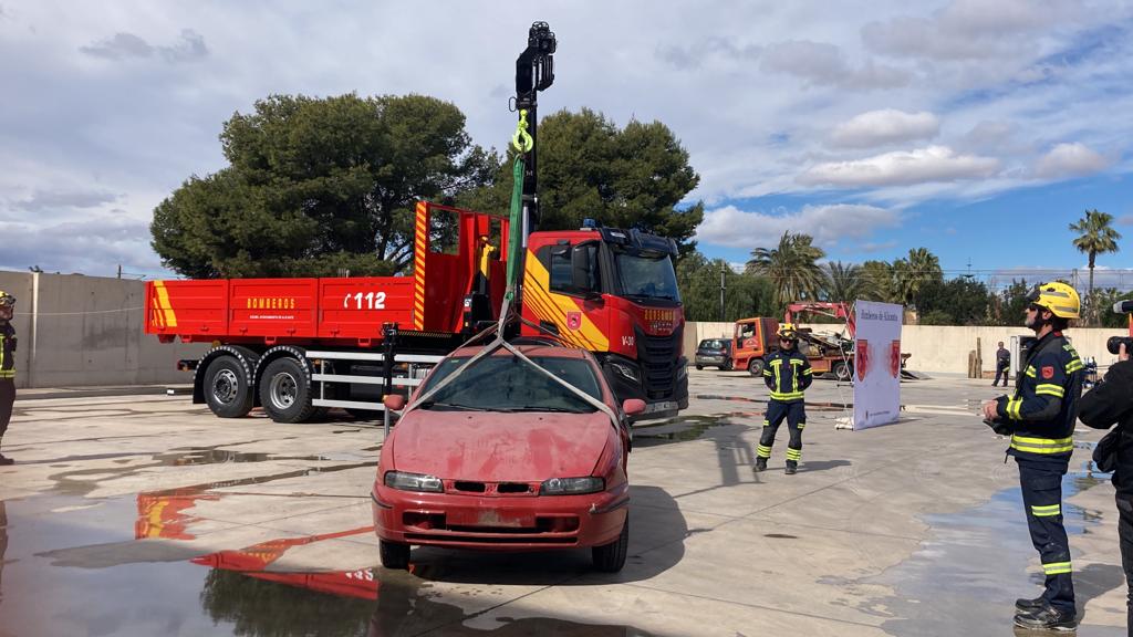 Alicante, a 6 de marzo de 2023. El Servicio de Prevención, Extinción de Incendios y Salvamento del Ayuntamiento de Alicante ha incorporado una nueva Auto Grúa Pesada -AGP-, que va a mejorar las intervenciones en accidentes, rescates y tareas en las que es necesario levantar cargas pesadas, así como en inundaciones. El SPEIS ha invertido 220.000 euros en la compra de este nuevo camión que ya está operativo en el parque Ildelfonso Prats para su uso.