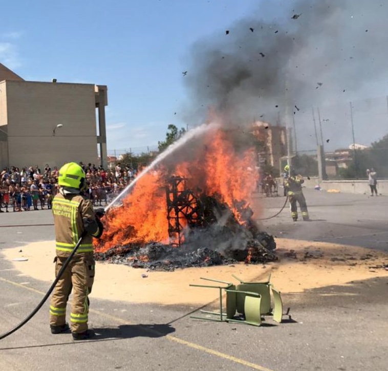 Concretamente, los Bomberos del SPEIS van a participar en la cremà de un total de 50 centros educativos, 20 centros sociales y residencias de mayores. El Centro Social de San Blas, fue el primero en quemar su Hoguera el día 1 de junio, y el CEIP Lucentum iniciará el próximo 8 de junio a las 12 horas la cremà de las hogueras infantiles escolares. Los días 14,16 y 19 de junio se concentran el mayor número de Hogueras.