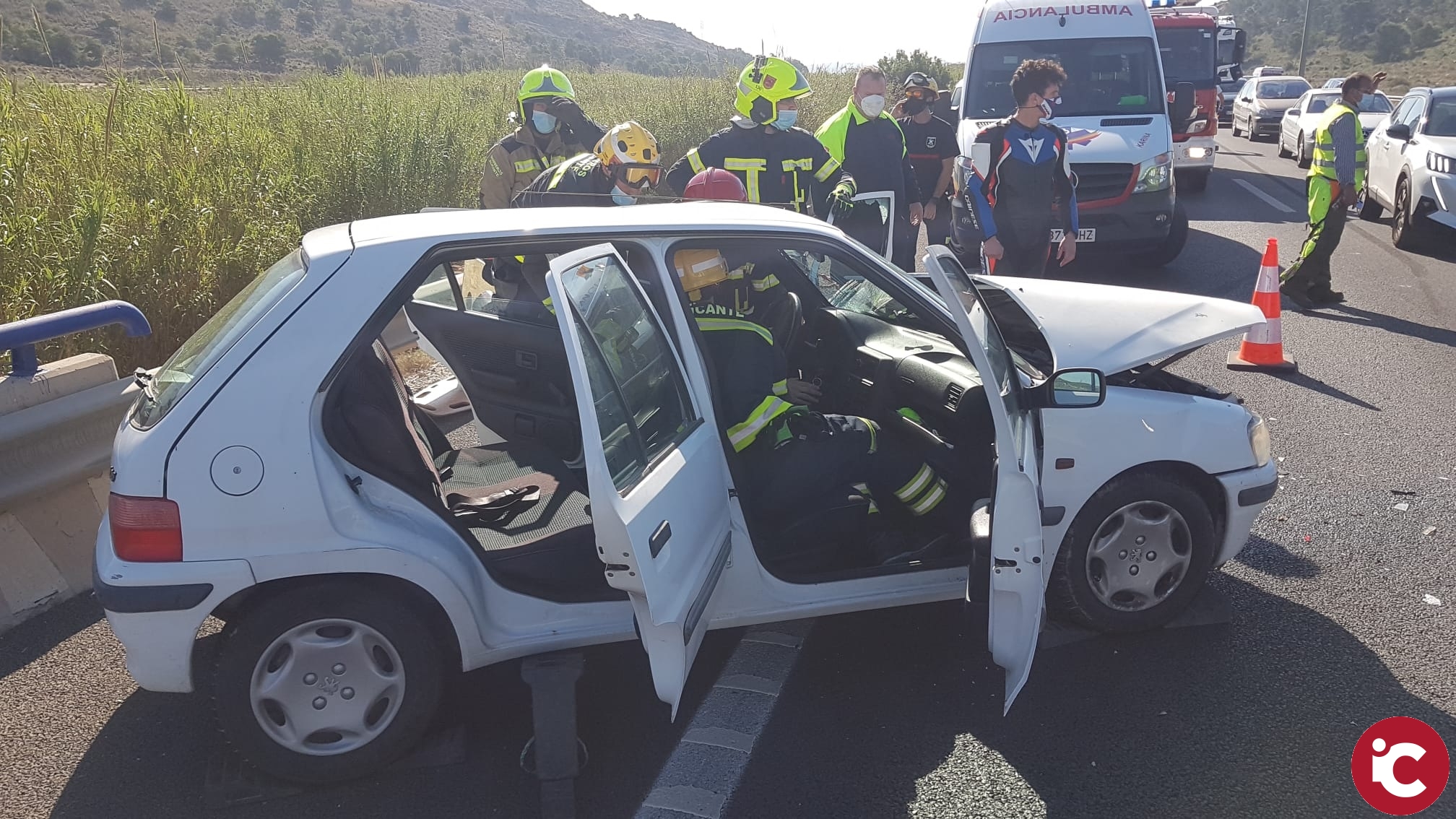 La concejalía de Seguridad del Ayuntamiento informa que dos dotaciones de los bomberos del Servicio de Prevención, Extinción de Incendios y Salvamento (SPEIS) de Alicante y la Guardia Civil han intervenido hoy en un accidente de tráfico para rescatar a un hombre que se ha quedado atrapado en interior de su vehículo, en un accidente que ha tenido lugar en la autovía a la altura de Villafranqueza.