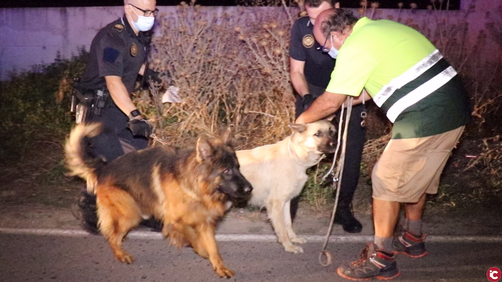 La Policía ha cortado el tráfico en la CV-824, durante las tareas de extinción del incendio, avisado a cuatro familias que viven en viviendas próximas pero sin necesidad de desalojo, participado retirando un vehículo estacionado en las proximidades de la parcela incendiada, guiado a los vehículos de bomberos hasta los hidrantes ubicados en el Polígono Canastell de San Vicente, y han rescatado cinco perros que estaban en una parcela colindante y se encontraban muy nerviosos por lo que se ha procedido a su traslado a las dependencias de la protectora.