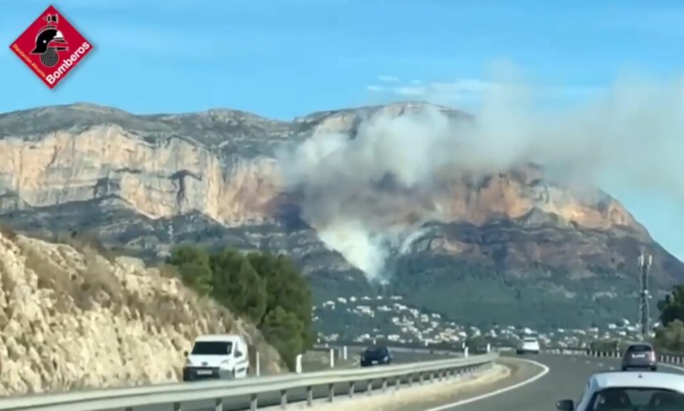 Los bomberos trabajan para terminar de sofocar el incendio del Montgó