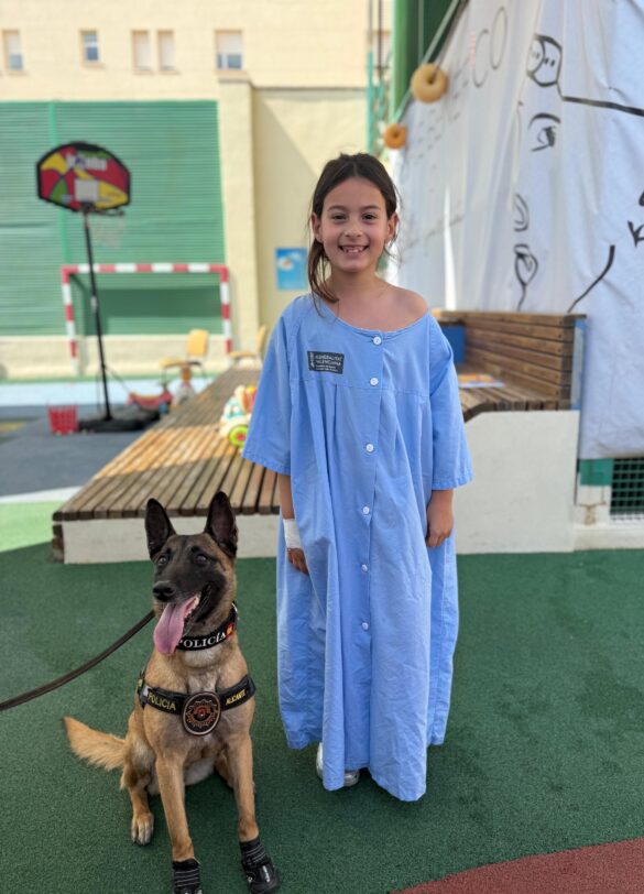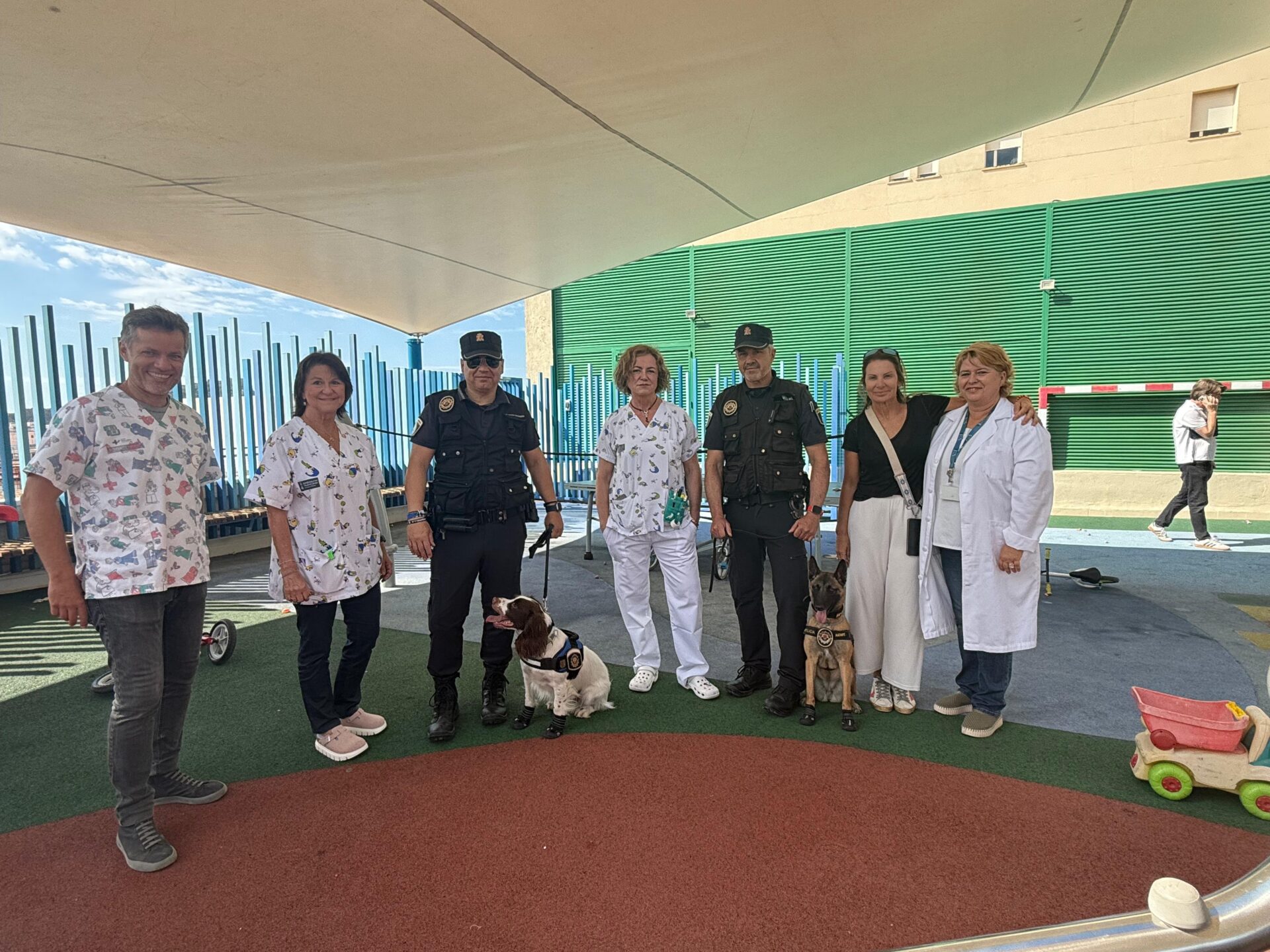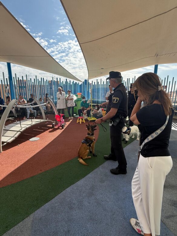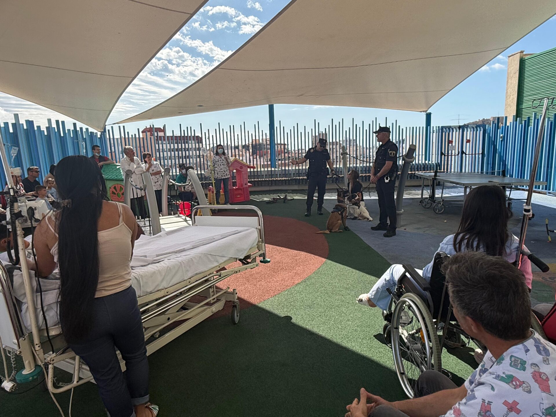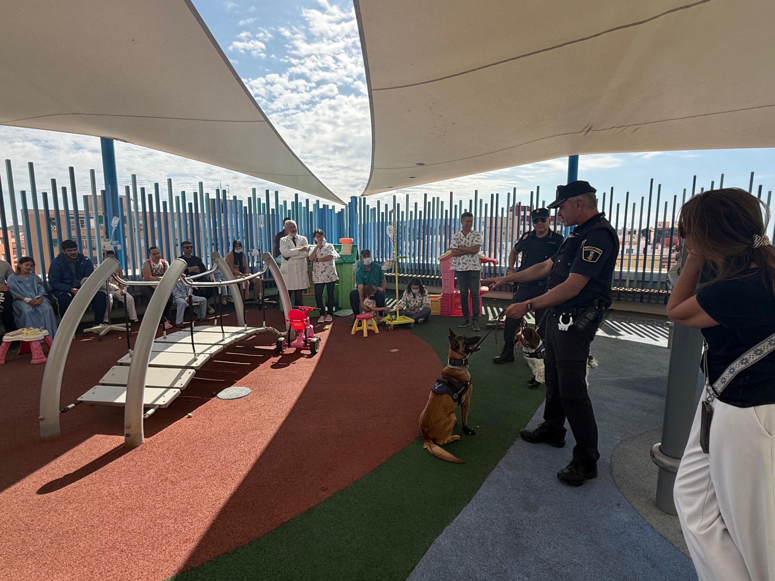 El Parque Juanín, ubicado en la quinta planta del Hospital General Universitario Doctor Balmis, ha acogido esta mañana una jornada muy especial, con la visita de la Unidad Canina de la Policía Local del Ayuntamiento de Alicante a los menores ingresados.