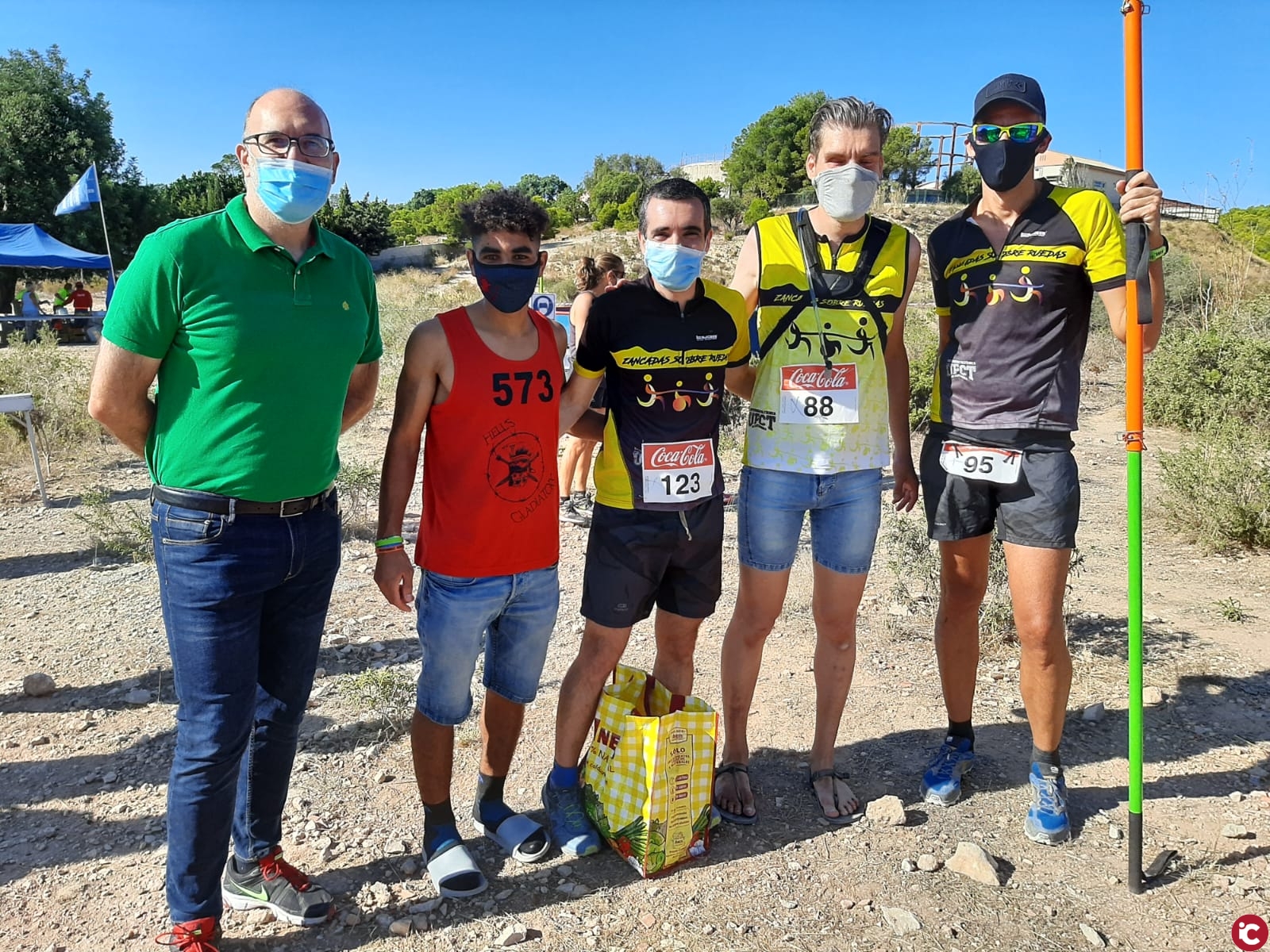 Alicante, 27 de septiembre de 2020. Más de 250 atletas han participado esta mañana en el crosstrail del Monte Orgegia sobre un recorrido de 9,5 kilómetros, organizado por el Grupo Brotons en colaboración con las concejalías de Deportes y Medio Ambiente del Ayuntamiento de Alicante y el patrocinio de Coca Cola y Caldo Aneto. El concejal de Medio Ambiente, Manuel Villar, ha asistido a esta prueba «en uno de los espacios medioambientales más importantes de Alicante que todos deberían conocer y donde se puede practicar deporte con total seguridad por pistas señalizadas tanto senderismo, carrera de montaña o mountain bike». La prueba ha sido ganada por Abderramaim Pérez Martínez, en categoría masculina y por Elvira Pascual Santamaría en femenina, en una mañana en la que ha destacado la participación de un atleta invidente, Roberto Clemente López, que ha superado la totalidad del recorrido con ayuda de dos liebres lazarillo y que ha merecido el aplauso de los asistentes.