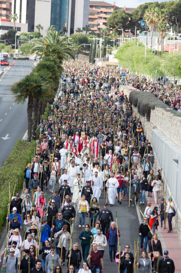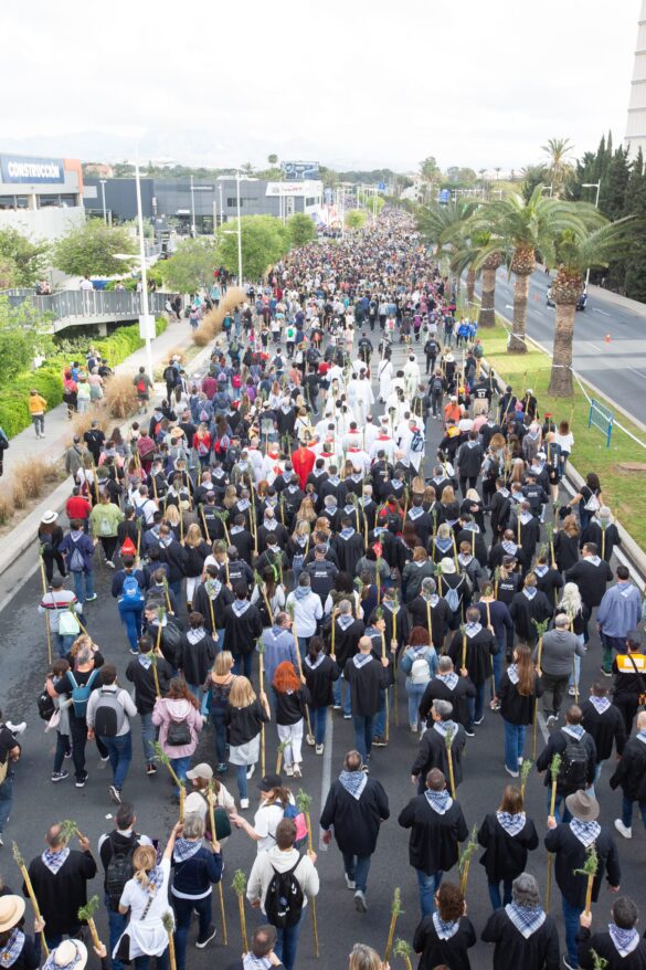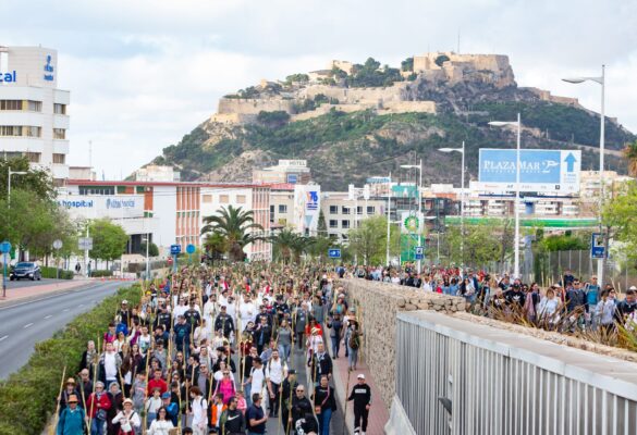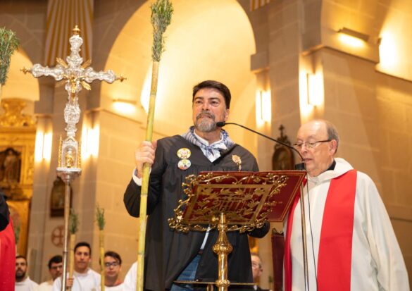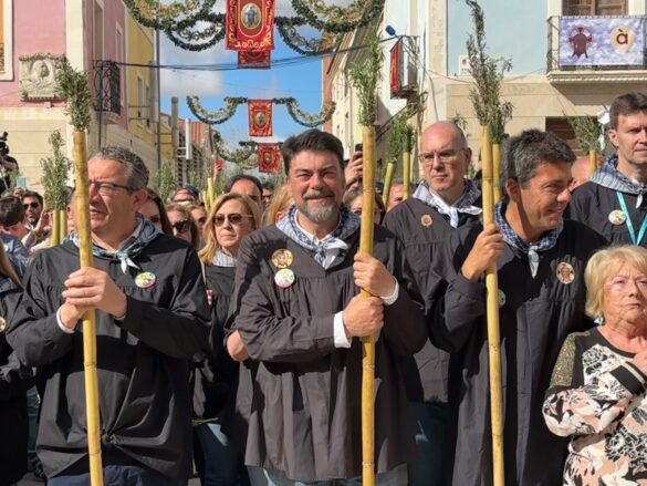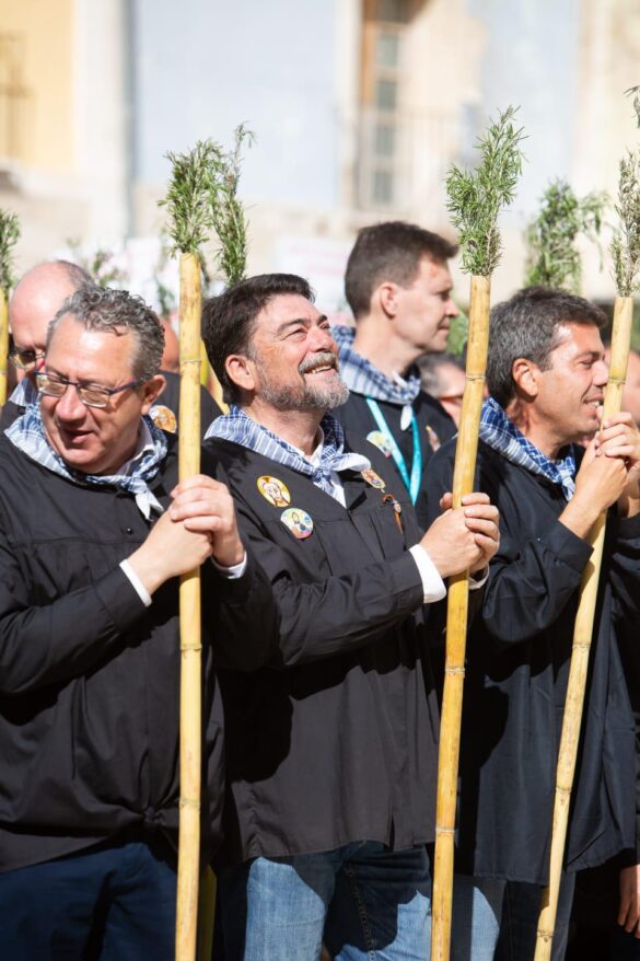 La Peregrina ha arrancado pasadas las ocho de la mañana desde la Concatedral de San Nicolás, después del reparto de 15.000 cañas de romero entre la fachada principal del Ayuntamiento y la concatedral. El primer edil y los integrantes de la Corporación Municipal ha hecho la romería junto al presidente de la Generalitat, Carlos Mazón, y el presidente de la Diputación Provincial, Toni Pérez, quienes han acompañado al obispo de Orihuela-Alicante, José Ignacio Munilla, en la 535 Romería a la Santa Faz, coincidiendo con el Año Jubilar.