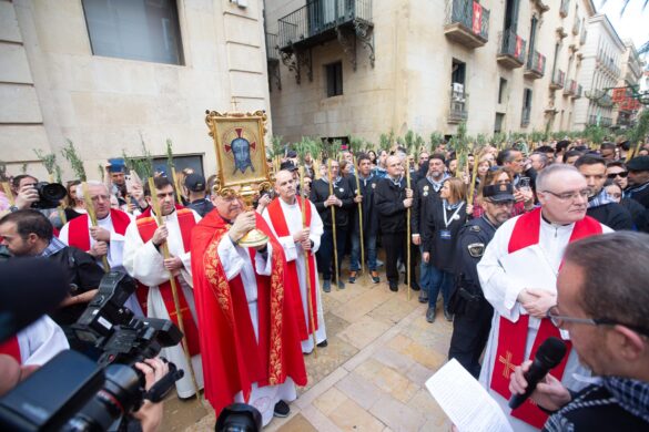 Siguiendo el ritual tradicional, bajo palio, la Santa Faz ha sido portada por el obispo Munilla hasta la plaza de Luis Foglietti para la celebración de la Eucaristía. Al término, y siguiendo el mismo ceremonial, el Sagrado Lienzo ha sido devuelto al camarín. A la conclusión, Barcala, Mazón y Toni Pérez han hecho un donativo a las Monjitas de la Sangre, quienes se encargan de custodiar a la Santa Faz durante todo el año.