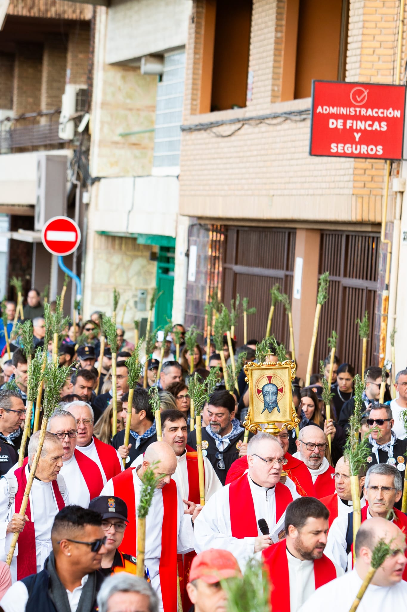 Los seis últimos tapices florales de la treintena que han adornado el recorrido los han podido ver los romeros al llegar a la calle Alberola Canterac, la peatonal que da acceso a la atestada plaza de Luis Foglietti. En este punto se han desatado las exclamaciones de “¡Santa Faz, Misericordia!” para recibir a la réplica del Sagrado Lienzo.