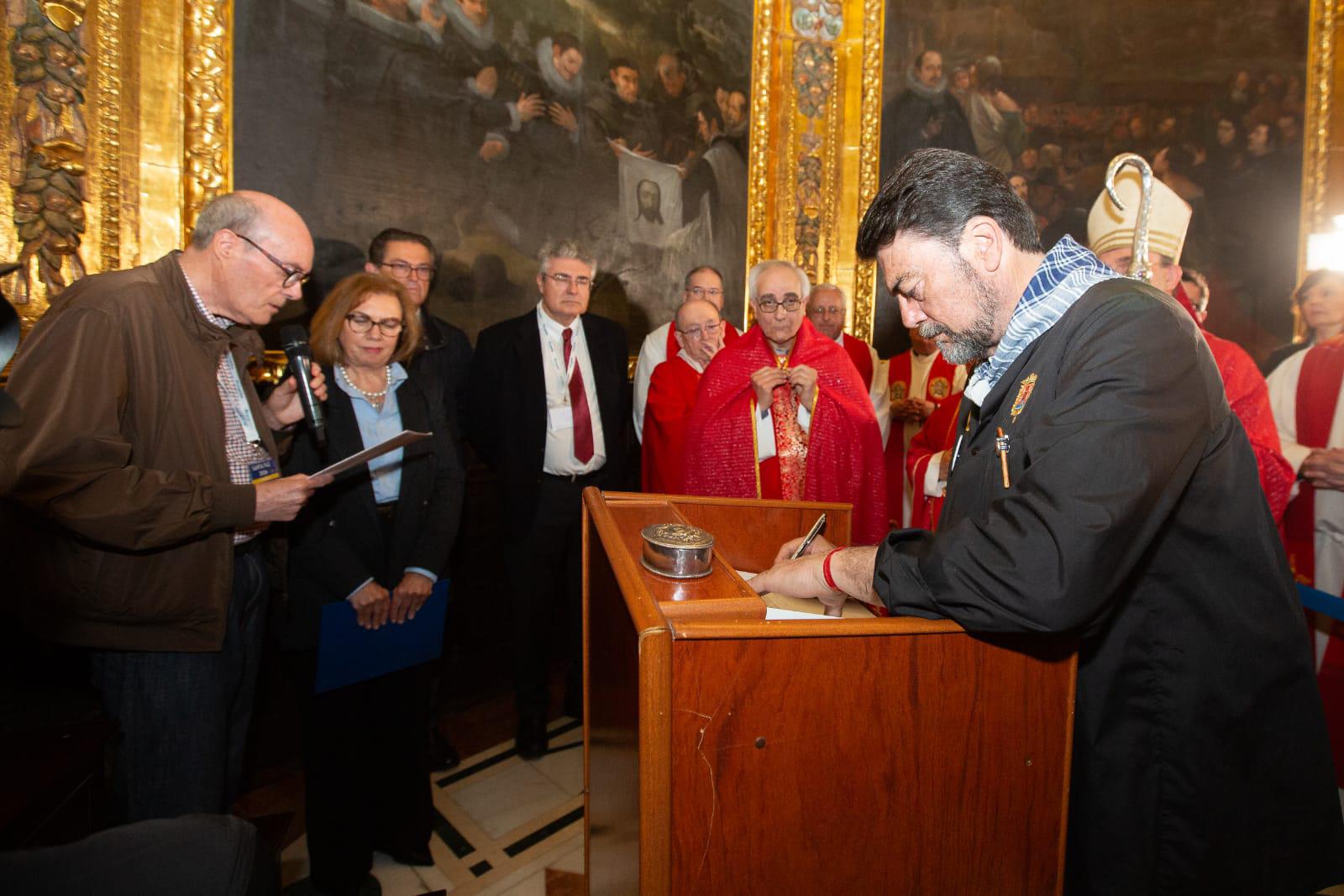Las concejalas síndicas Cristina Cutanda y Nayma Beldjilali han sido las encargadas, junto con el capellán del monasterio, Miguel Ángel Cremades, y el deán de la concatedral, Ramón Egío, de la apertura de la hornacina del camarín, donde se venera la Santa Faz. Lo han hecho, tal y como se remonta a un protocolo del siglo XVI, junto a la secretaria general del Pleno en funciones, Lidia María Baeza, y los Caballeros Custodios, Salvador de Lacy y Eleuterio Llorca.