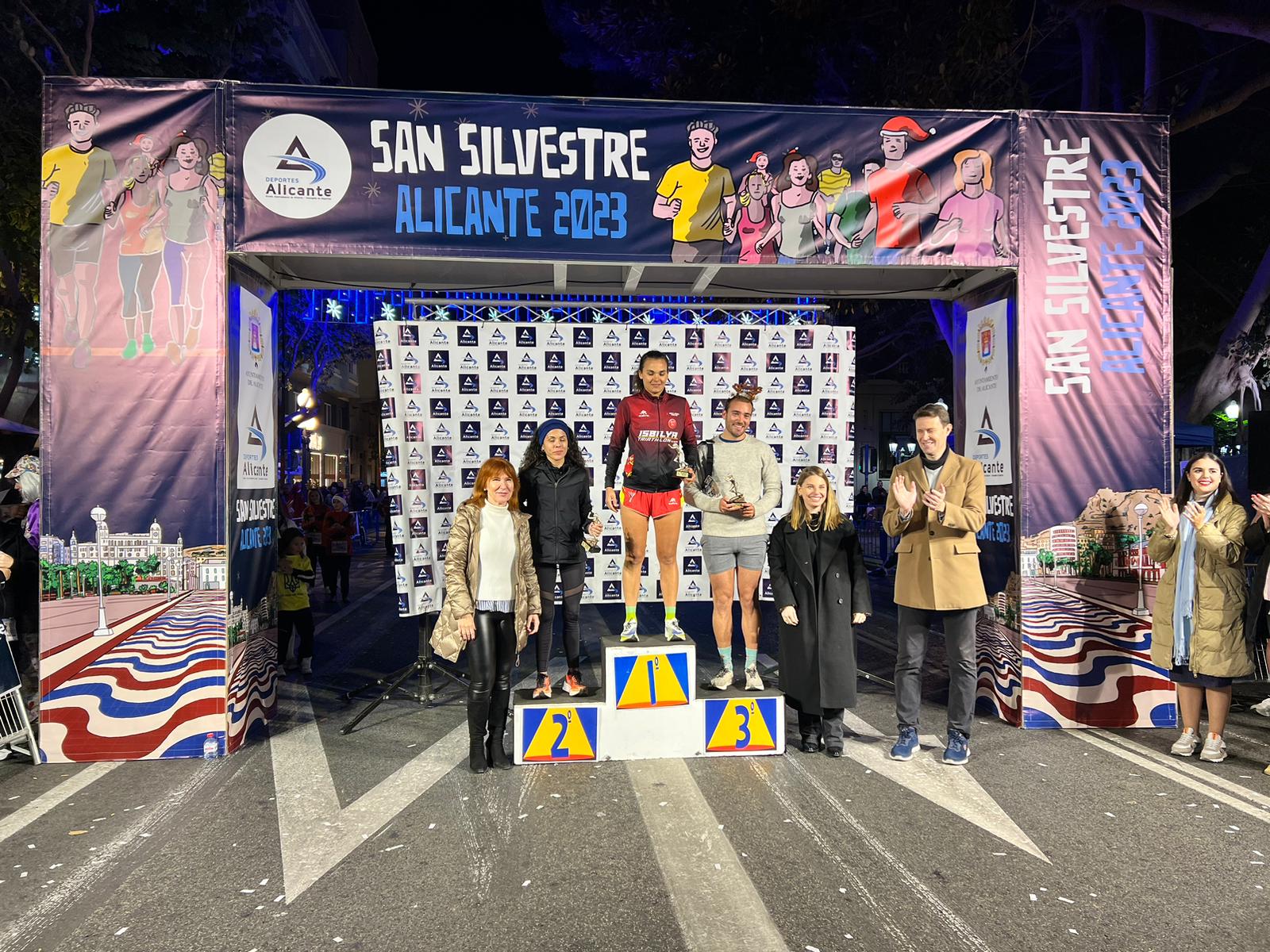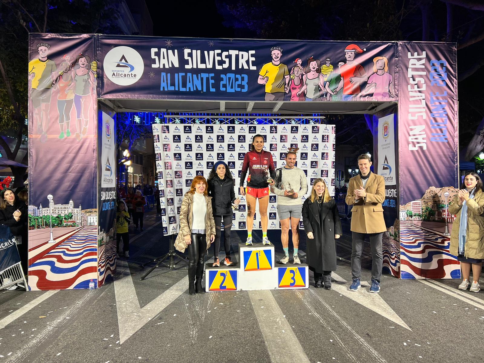 Después de más de una hora de carrera por las calles del centro de Alicante, que se ha desarrollado con completa normalidad y ausencia de incidentes, el concejal de Deportes, Toni Gallego, ha entregado las medallas al atleta serbio Ognzen Stujanovic y a la española María Bustamante, primeros clasificados en las categorías masculina y femenina. Les han seguido Javier Sánchez y Joaquín Borrell. En el caso de las chicas, Eli Oliva y Beatriz Puche.