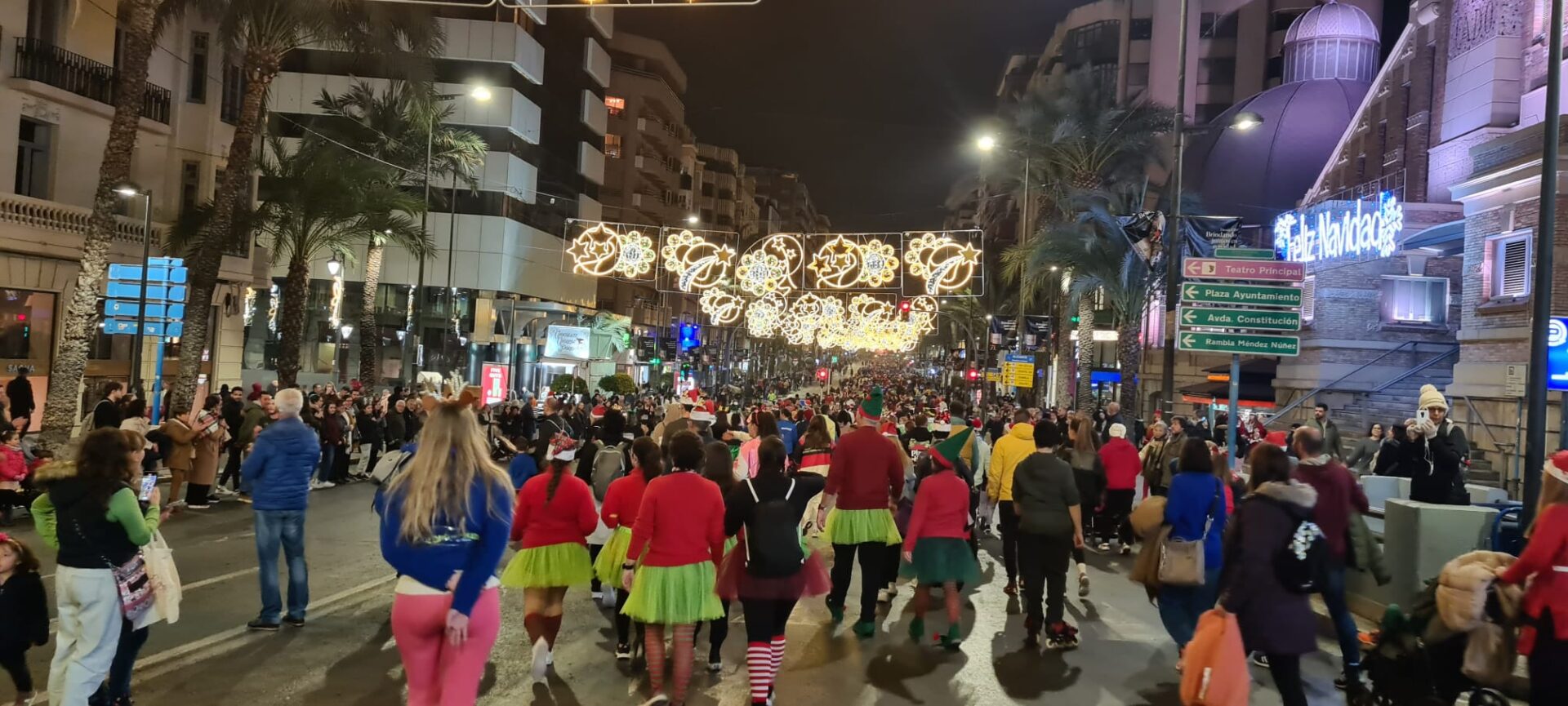 Más de 5.000 corredores han convertido en la tarde-noche de este viernes la carrera popular ‘San Silvestre’ de Alicante en un récord de solidaridad, diversión, buen humor y risas que se han prodigado durante los 4.700 metros del recorrido, con salida y llegada en la Rambla de Méndez Núñez, a la altura de la Casa de la Festa ‘Manuel Ricarte’. A los 2.800 inscritos oficialmente, se han sumado cientos de participantes de manera anónima hasta superar los mejores registros históricos de la prueba en cuanto a número de corredores