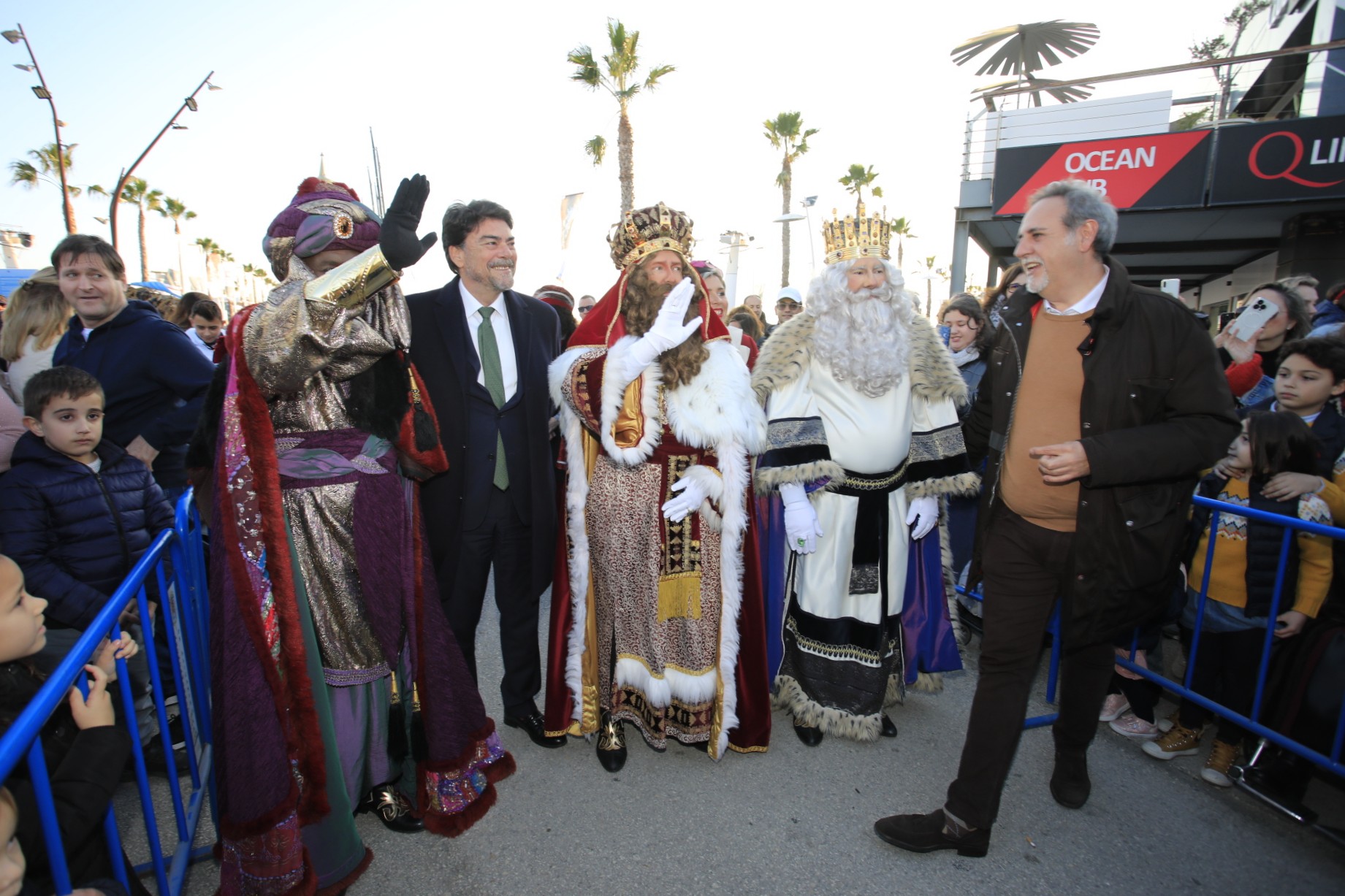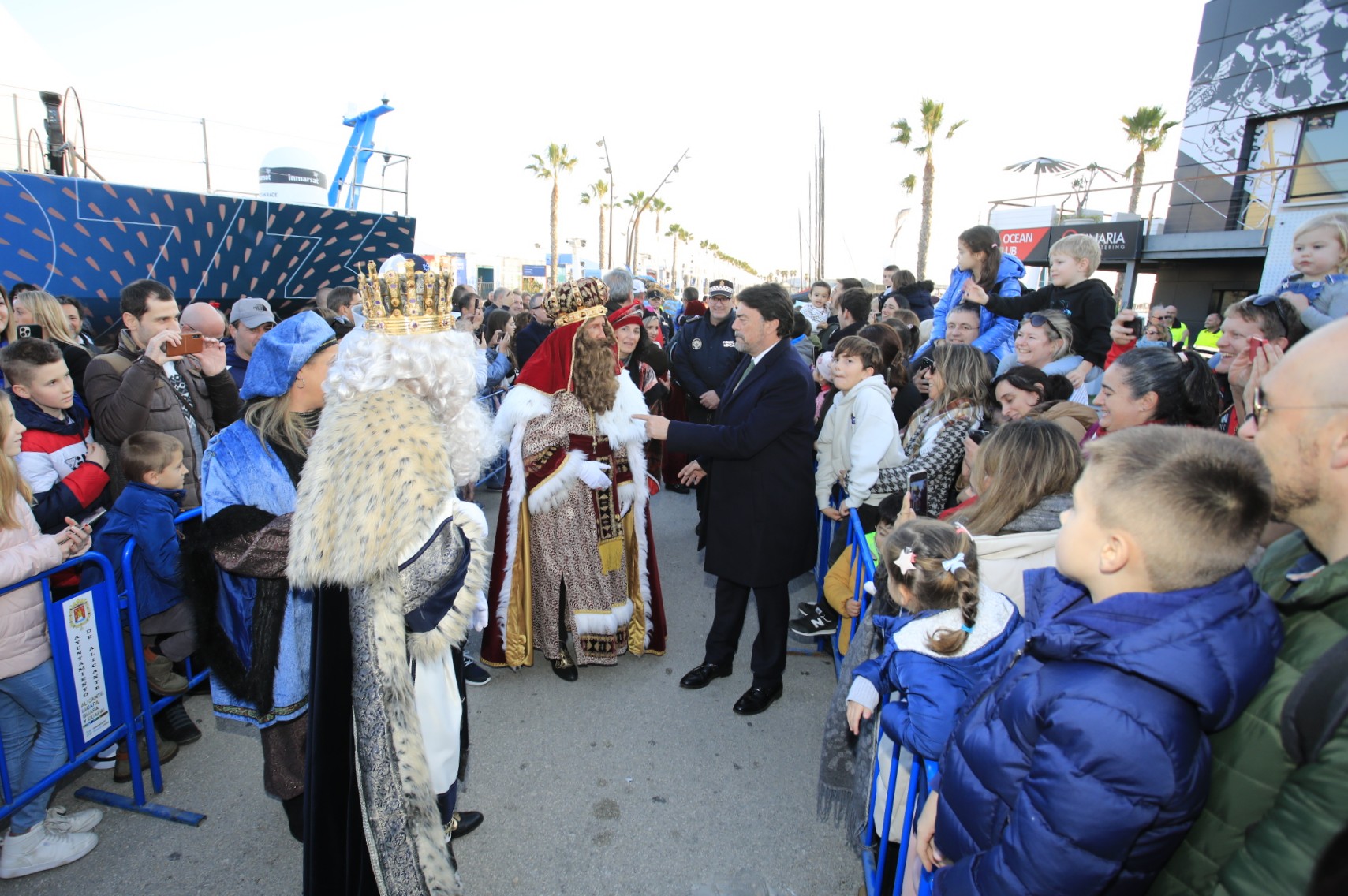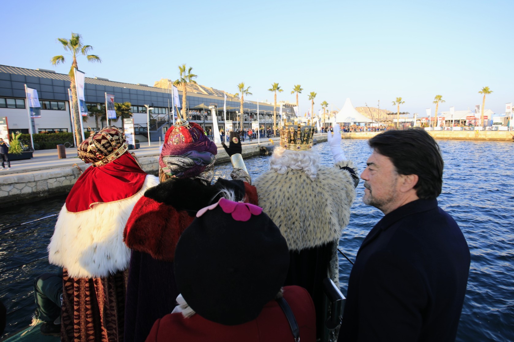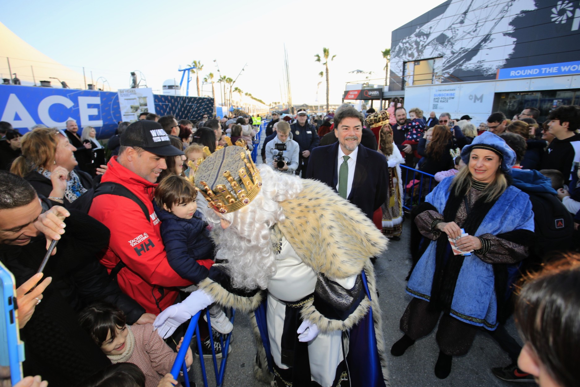 Alicante, 5 de enero de 2023. Más de 50.000 personas se han congregado este jueves en los distintos tramos del Recorrido Oficial para presenciar la Cabalgata de los Reyes Magos de la vuelta a la normalidad, después de dos años con restricciones derivadas de la pandemia. Con respecto al pasado enero de 2021, donde sí hubo Cabalgata aunque con limitaciones sanitarias, se calcula que han sido unas 30.000 personas más las que la han presenciado en un ambiente de entusiasmo, ilusión y reconocimiento a los participantes. En esta jornada mágica para los más pequeños, el primer contacto de los niños con los Magos de Oriente se ha producido este jueves en el muelle 10 del Puerto de Alicante donde han llegado en una embarcación de la Autoridad Portuaria. Allí han hecho un pequeño saludo y se han dejado fotografiar por unos instantes.