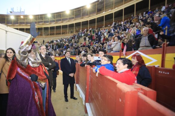 Desde ese punto se han dirigido a la plaza de toros. Mientras llegaban, finalizaba el espectáculo infantil “La magia de la Navidad”. Unos 3.000 niños lo han podido presenciar después de que recogieran las invitaciones que se han ido entregando en los últimos días en la Casa de la Festa “Manuel Ricarte”. Sus Majestades, encarnados en Moncho Riquelme, Francisco Coll y Carlos Baño- han saludado a los pequeños espectadores desde el propio ruedo antes de subir a un escenario para dirigirles unas breves palabras. A continuación, se han dirigido a la avenida de la Estación para el comienzo de la Cabalgata en la que también han participado las Carteras Reales, representadas por Marisa Artiaga, Ana Poquet y María Teresa Alfonso.