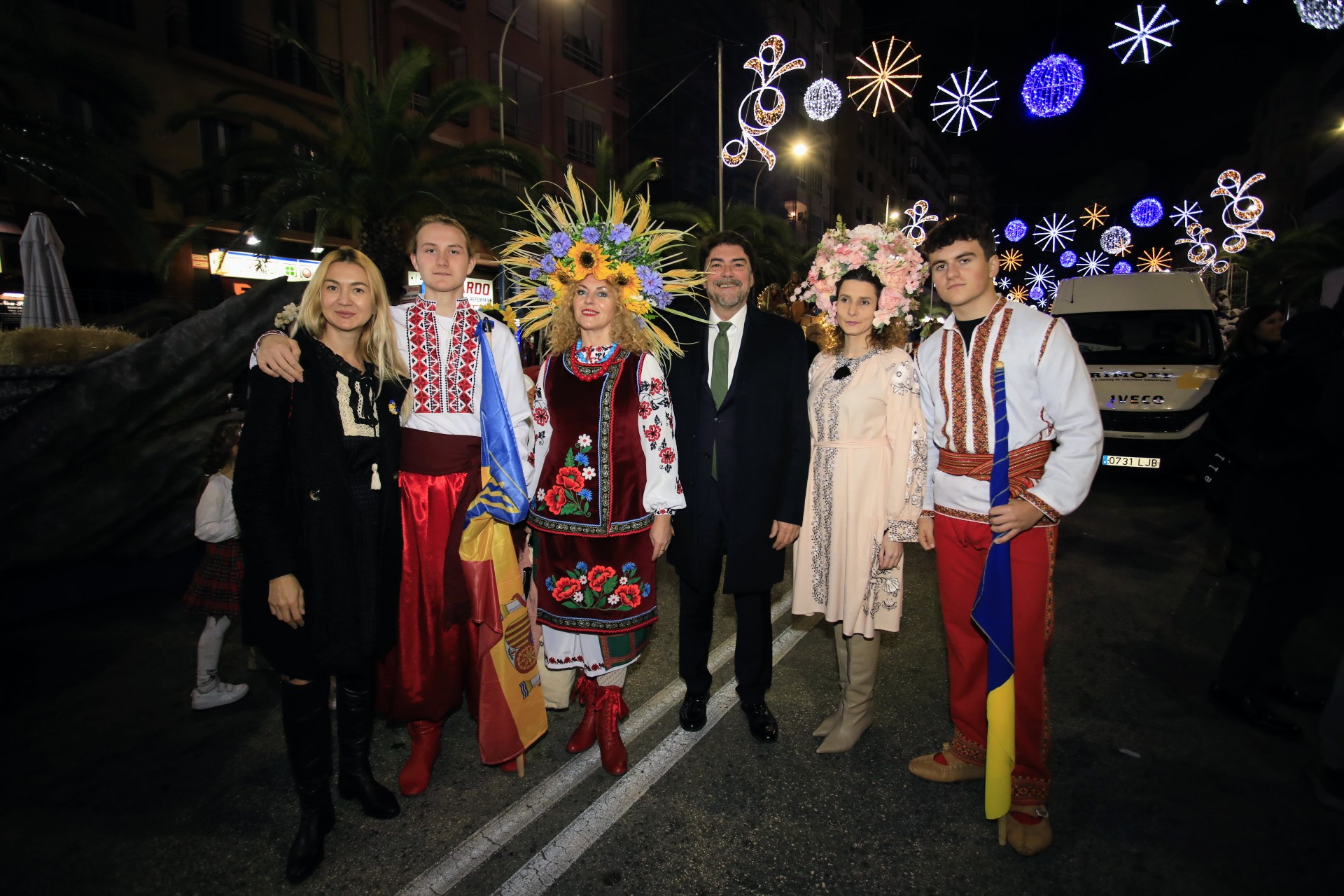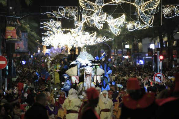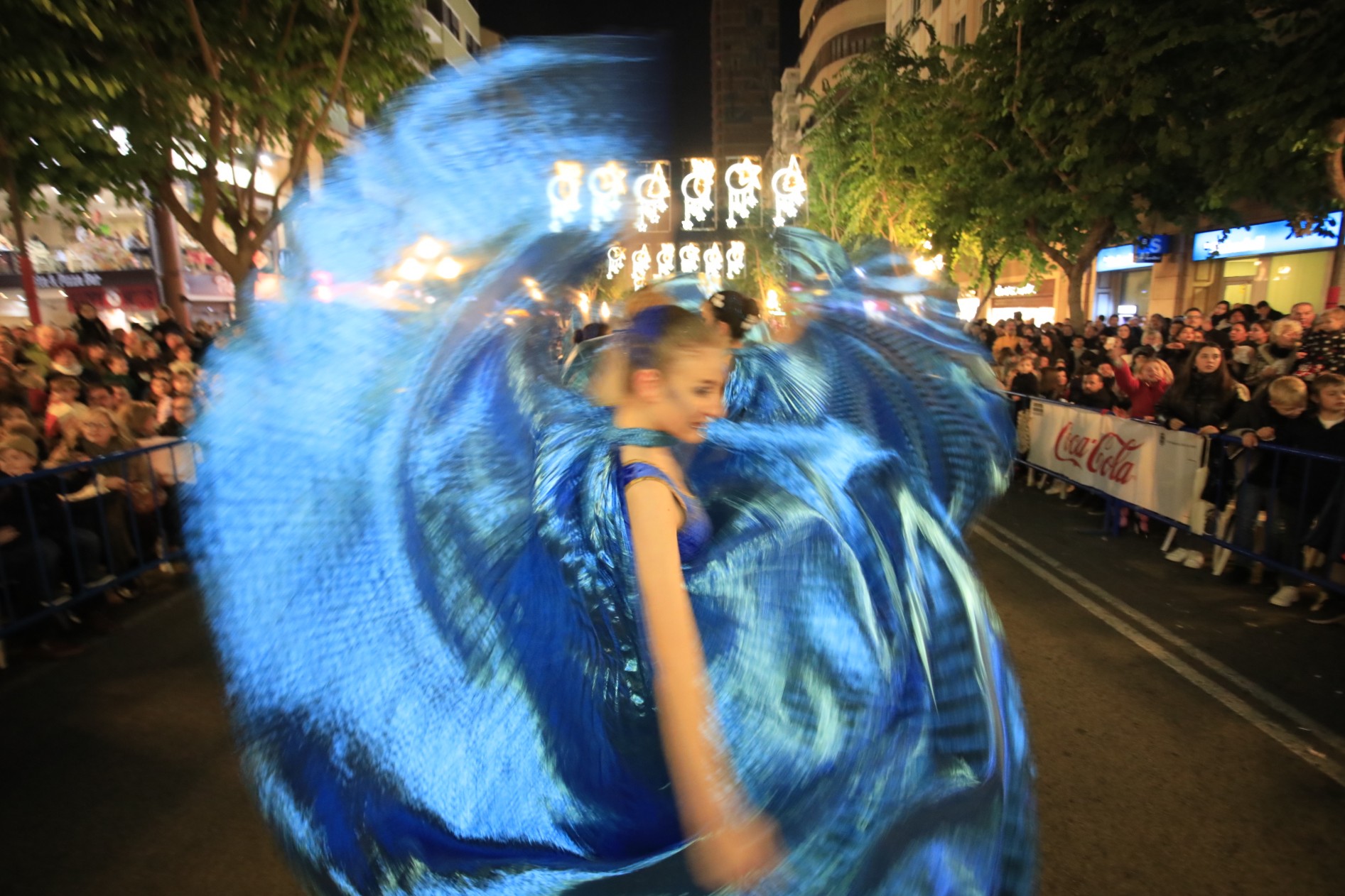 Esta primera parte del desfile también ha contado con la batucada “Ciudad de los Colores”, y la interpretación de “Sueño”, a cargo de las alumnas de la Academia Lucrecia Villó, una coreografía que ha transmitido la magia de la Navidad. Ha sorprendido el espectáculo de gran formato “Claro de Luna”, compuesto por siete artistas y un gran coche con acróbata aérea. No han faltado tampoco las danzas tradicionales y la colla de Nanos i Gegants d´Alacant.