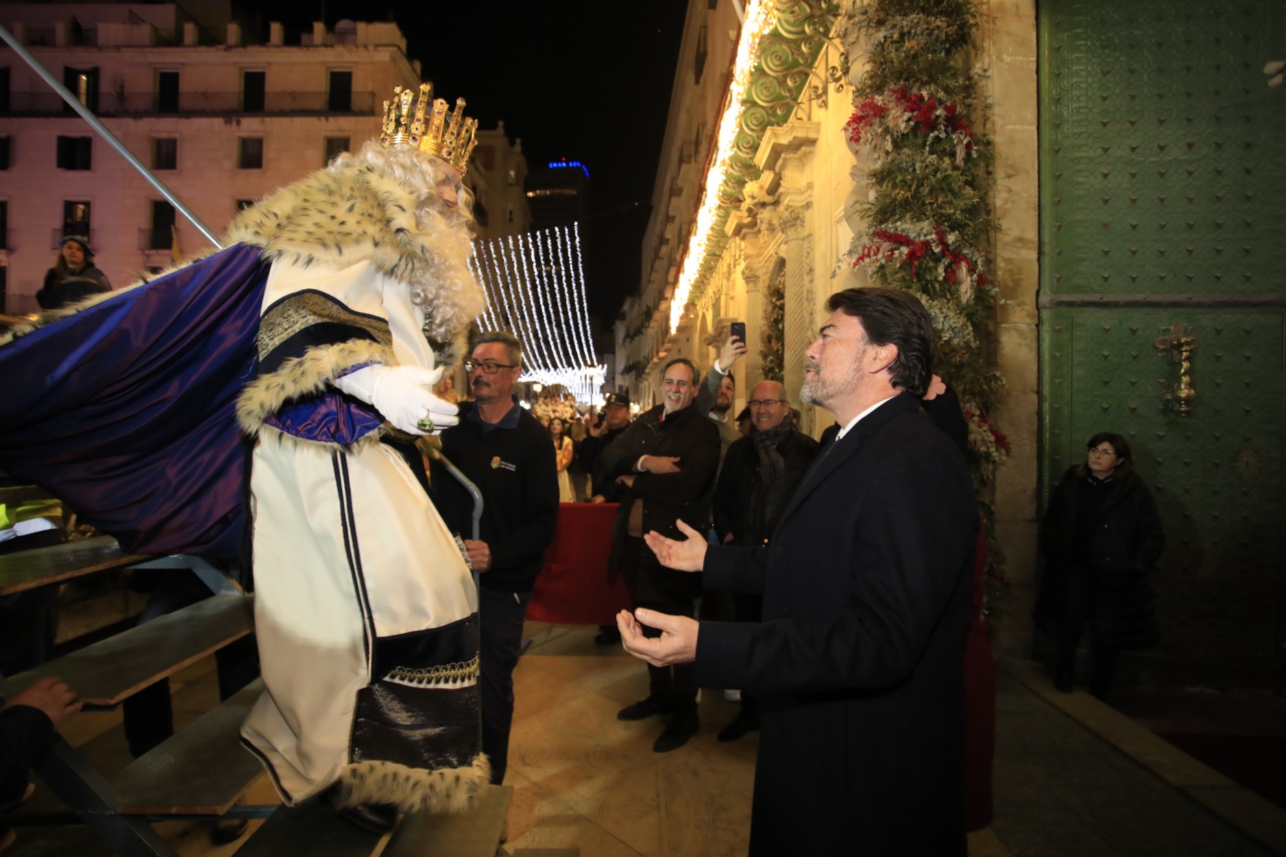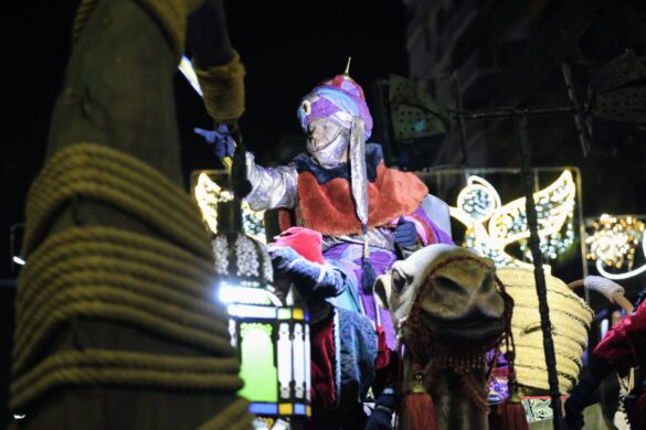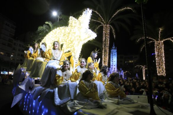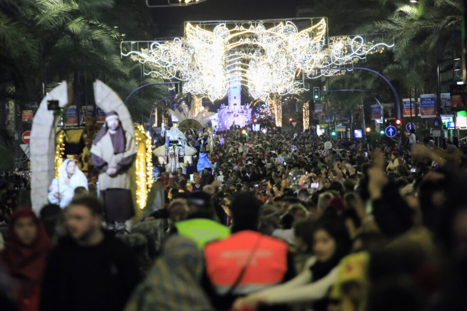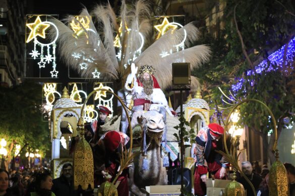 La carroza de La Estrella ha abierto la Etapa Bíblica de la Cabalgata, distribuida en cuatro escenas: “San José pidiendo cobijo en posada”, “Anunciación a los Pastores”, “Registro en el Padrón” y “Nacimiento de Jesús”. Cada una de ellas, con el acompañamiento de una colla de dolçaina i tabalet. Les han seguido los séquitos y carrozas de los tres Reyes Magos. La de Melchor precedida por el ballet “I´m the artist” y con la música de la Agrupación de la SCD Carolinas. En el caso de Gaspar, con el ballet “Xabat”, de Virginia Boloufer, y L´Harmonia Sociedad Musical. Por lo que respecta a la de Baltasar, el ballet Jambo-Master´s y la Banda Sinfónica Municipal de Alicante. Detrás de cada una de ellas, las carrozas con los regalos de cada uno de los Magos de Oriente. Han cerrado la comitiva las carrozas de los patrocinadores de la Cabalgata.