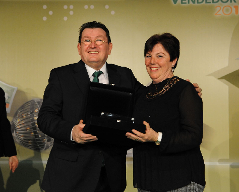 Mercedes, junto a los otros veintidós vendedores seleccionados de todos los puntos de España recibieron los correspondientes galardones, hace unos días, en el transcurso de una cena de gala celebrada en el Hotel ILUNION Pío XII de Madrid, en la que estuvieron acompañados por los máximos responsables de la Organización.