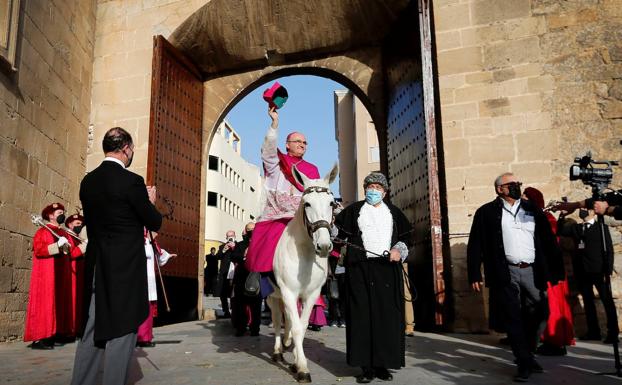 El hasta ahora prelado de San Sebastián,  D. José Ignacio Munilla, ha cumplido la tradición en su toma de posesión en Orihuela antes de ser nombrado Obispo. Munilla, defiende que la iglesia es un espacio de “encuentro y diálogo” El nuevo obispo arropado por miles de personas, cumplió con la  tradición de cruzar la Puerta de la Olma a lomos de una mula blanca.