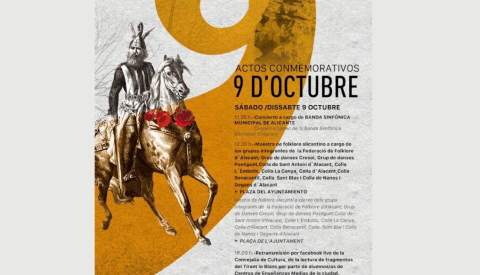 El Ayuntamiento de Alicante, a través de la concejalía de Cultura, ha programado un concierto de la Banda Sinfónica Municipal , y una exhibición de folclore alicantino como centro de sus actividades del 9 d’Octubre. El recital se celebrará a las 11.30 horas en la Plaza del Ayuntamiento y, a continuación, actuarán los grupos de danzas populares y collas.