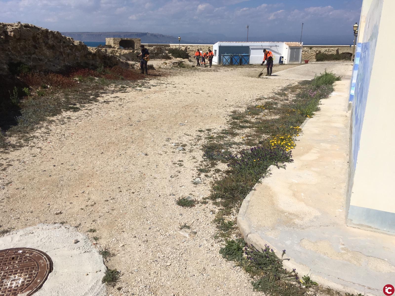 Israel Cortes ha explicado que “hemos desarrollado esta acción que complementa a la ya realizada en febrero en las calles y plazas de la zona habitada, además de en las playas, con el fin de eliminar las matas y malas hierbas existentes en el entorno, algunos solares y, sobre todo, en los itinerarios de la zona amurallada muy frecuentados por los turistas”.