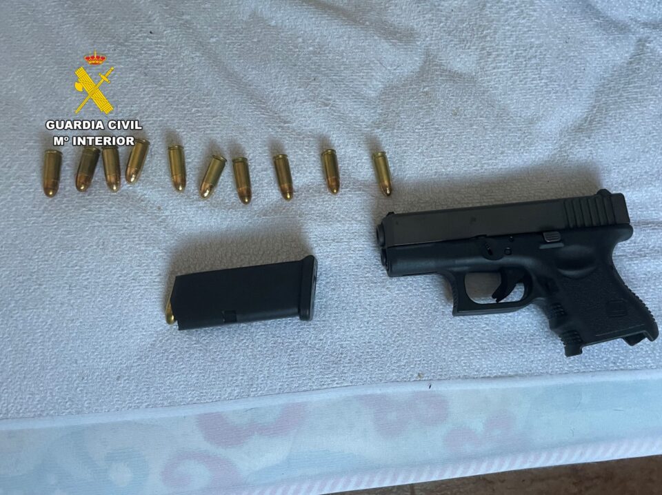 • En el domicilio de Torrellano fue hallada también una pistola municionada y montada en la mesilla de noche de uno de los objetivos