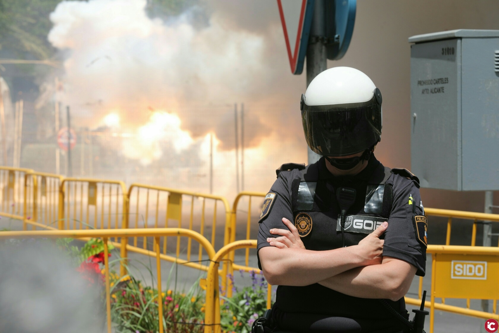 Una delegación internacional de policías visita la mascletá.