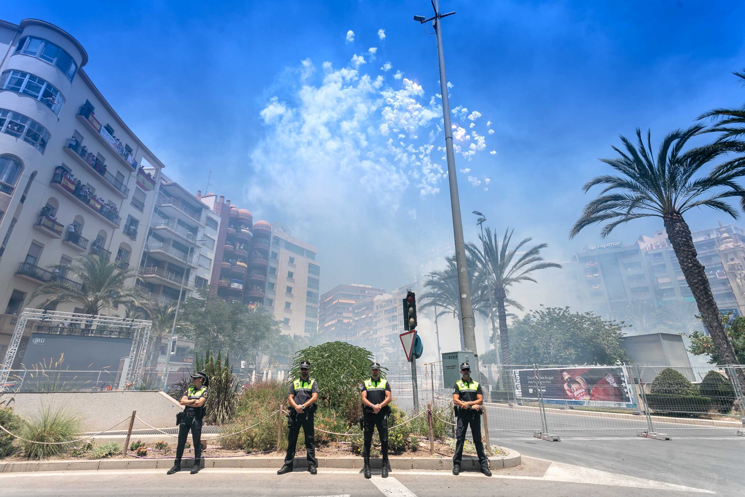 Ha llegado, a renglón seguido, el cuerpo de la mascletà compuesto por seis retenciones y los acompañamientos aéreos antes de un ‘terremoto’ con dos alturas y tres fases. Después de éste, y con los espectadores ya vibrando, ha comenzado el final aéreo. Éste se ha podido escuchar desde distintos puntos y se ha caracterizado por un impresionante crujido pirotécnico con carcasas de trueno. Todo ello, prólogo de una apoteosis en el que se han sucedido los truenos y meteoros de color hasta el gran golpe final. Si antes había estallado el conjunto de la mascletà, en ese momento ha sido la plaza la que ha explotado de júbilo en honor de Pirotecnia Ferrández. Mañana, en la cuarta sesión de este certamen, será el turno de Pirotecnia Alto Palancia, de Altura (Castellón), que debuta en Alicante.