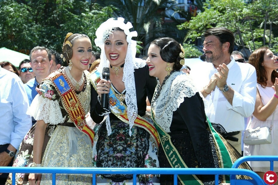 El alcalde de Alicante, Luis Barcala, y el concejal de Fiestas, José Ramón González, han asistido hoy junto a las Belleas del Foc y sus Damas de Honor a la mascletà.