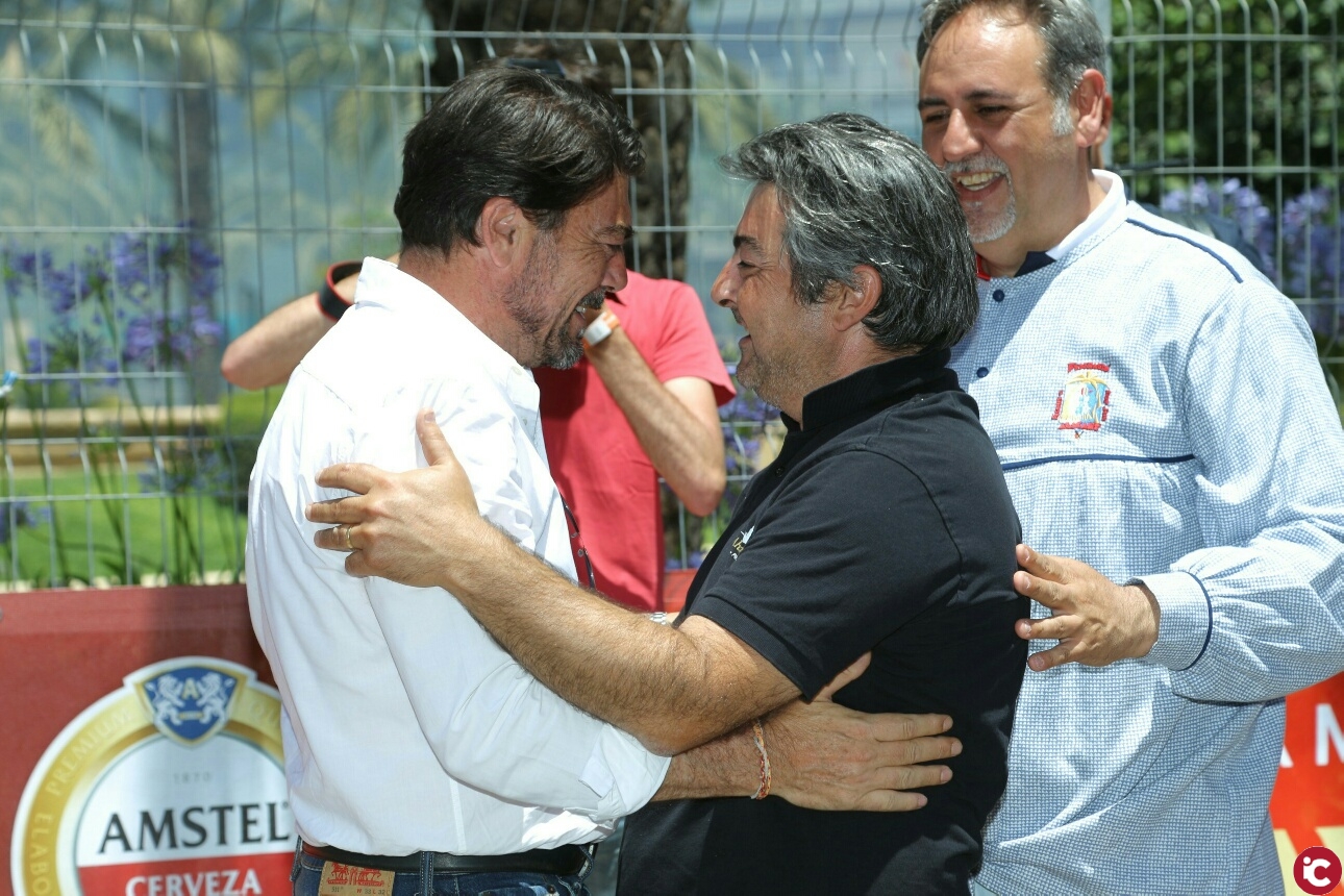 El alcalde de Alicante, Luis Barcala, y el concejal de Fiestas, José Ramón González, han asistido junto a las Belleas del Foc y sus Damas de Honor a la mascletà.
