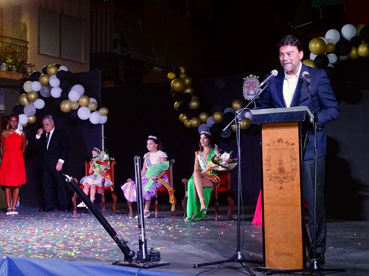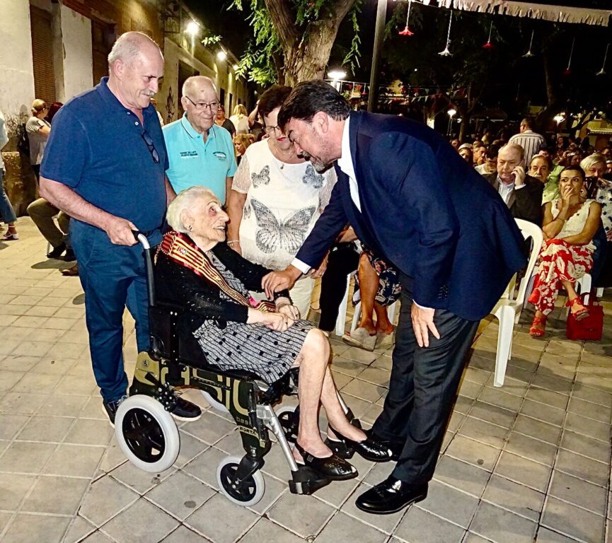 Barcala, antes de glosar las figuras de los cargos de honor, regaló un pequeño detalle a María González Andújar, vecina de La Florida que tiene 107 años y que ostenta el título de Madrina de Honor 2022. Destacó de la Reina de las Fiestas 2022, María Estevan Zúñiga, su “mezcla de compromiso con tu barrio, con la alegría que te supone representarlo y la responsabilidad que conlleva”. De la niña “tranquila y buena” como definió a la Reina Infantil, Daniela López Blasco, aseguró que “la banda que te han impuesto no es un regalo. Sí, un merecimiento a tu incipiente trayectoria festera”. Emma Toral Armero, la Madrina de Honor, no pudo desempeñar su cargo como Reina Infantil 2020 debido a la pandemia. “Hoy -referido a la noche del jueves- ese sueño se ha convertido en realidad en una banda bañada con la gratitud de quienes te quieren y admiran”.
