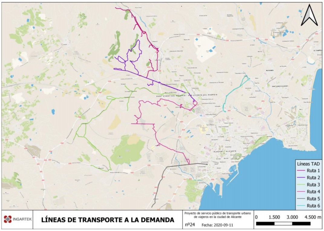 La propuesta a recuperar es la de la Línea TAD 1 San Vicente – Moralet, Línea TAD 2 San Vicente – La Cañada – Moralet – Villanueva – San Vicente, Línea TAD 3 San Vicente – La Alcoraya – Rebolledo, Línea TAD 4 San Vicente – Salar – Fontcalent – Alicante, Línea TAD 5 Alicante – Bacarot y Línea TAD 6 Villafranqueza – Tángel.