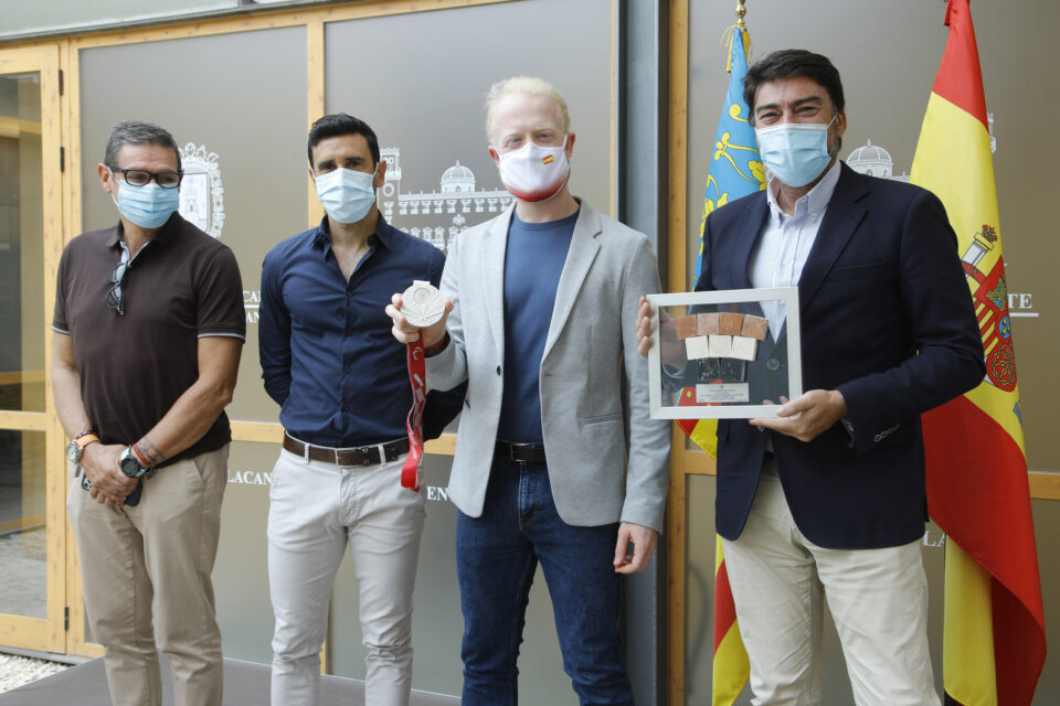 El alcalde de Alicante Luis Barcala y el concejal de Deportes Luis Berenguer han recibido este martes al atleta alicantino Iván Cano, reciente ganador de la medalla de plata en la prueba de salto de longitud en la categoría de discapacidad visual T13 en los pasados Juegos Paralímpicos de Tokio. Barcala ha felicitado al atleta por su “enorme espíritu competitivo”, por dar notoriedad a su colectivo y, además, por conquistar una presea en los primeros Juegos Olímpicos en los que participa.