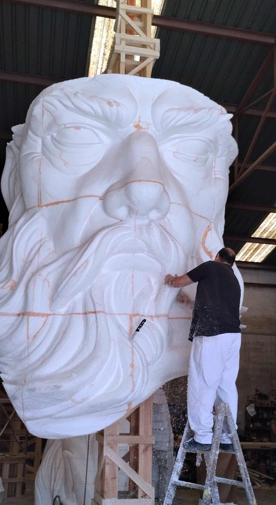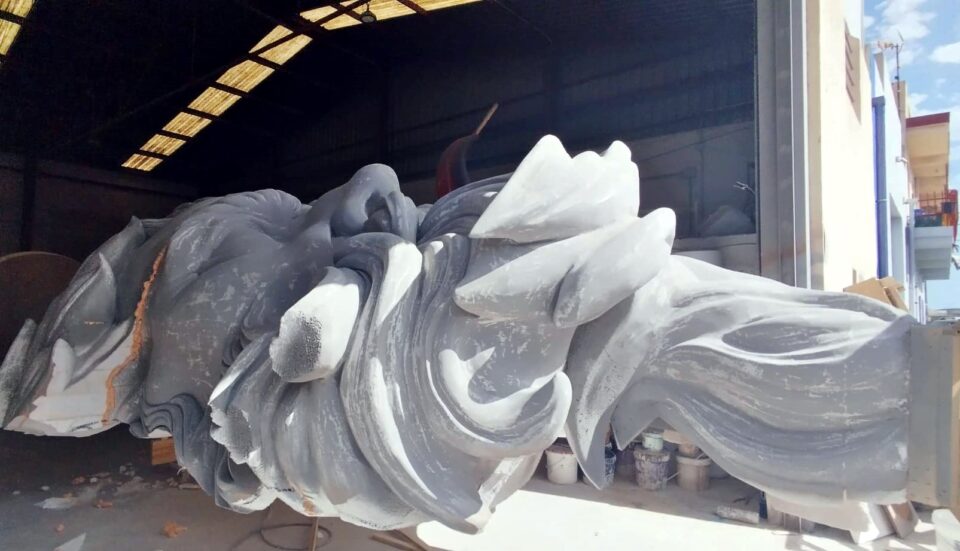 La obra, titulada “Ayer, hoy y mañana”, está siendo creada por el artista alicantino Fran Santonja Peni (Arte Efímero S.L.) y se alzará hasta los 20 metros de altura. Esta impresionante foguera invita a reflexionar sobre la evolución de la Humanidad, desde sus orígenes hasta los desafíos del presente y las incertidumbres del futuro. El proyecto cuenta con la dirección artística y los versos de Juan Carlos Vizcaíno, conocido festero de Villena e integrante de la comparsa Labradores.