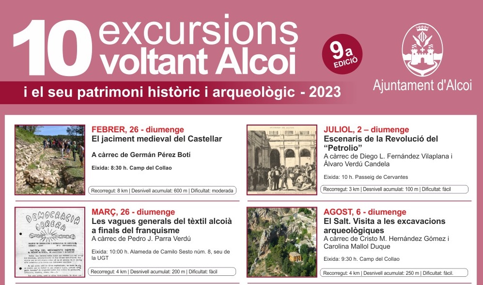 Tot preparat per a realitzar les 10 excursions voltant Alcoi i el seu patrimoni històric i arqueològic de enguany 2023 en la seua 9a edició.