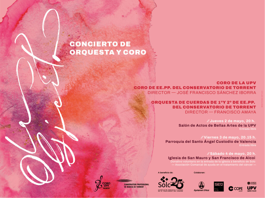 El concert serà interpretat pel Cor de la UPV i el Cor d’Ensenyaments Professionals del Conservatori de Torrent, dirigit per José Francisco Sánchez Iborra; i l’Orquestra del Conservatori de Torrent, dirigida pel director alcoià, Francisco Amaya