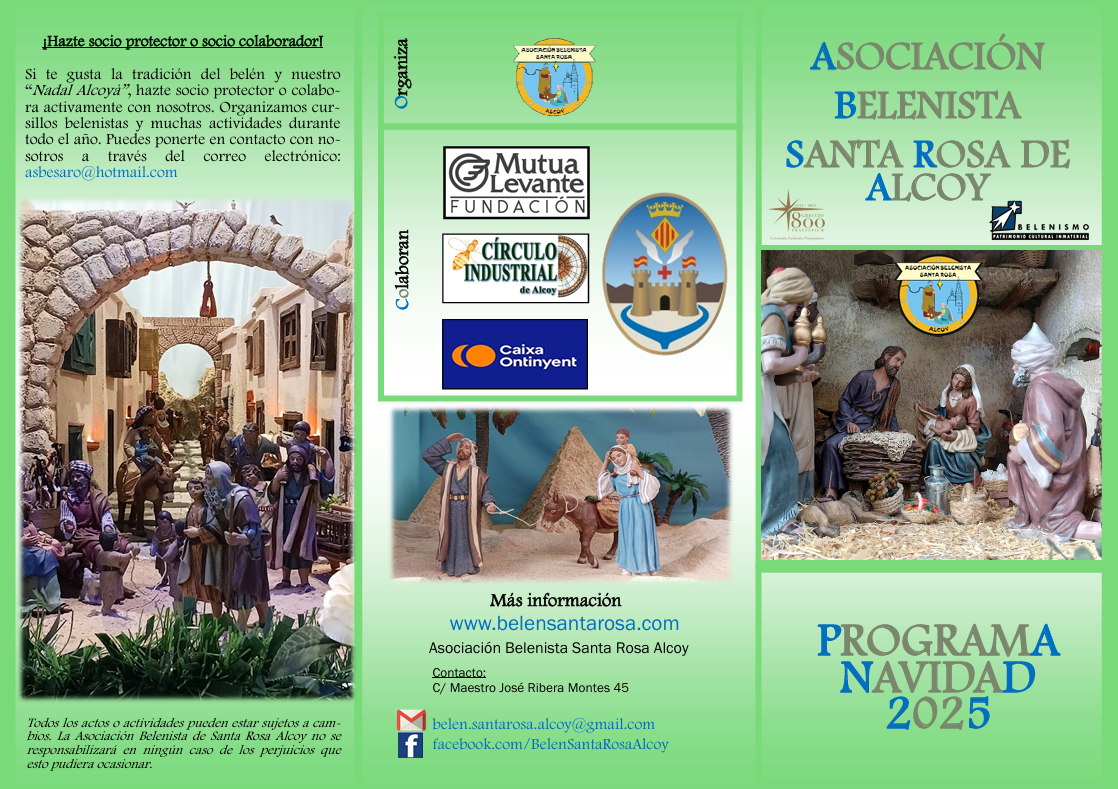 La Asociación Belenista Santa Rosa de Alcoy, fundada en 2007 como evolución de la antigua comisión del belén parroquial, es hoy una entidad cercana al centenar de socios dedicada a preservar, promover y dignificar la tradición del belén en la ciudad.