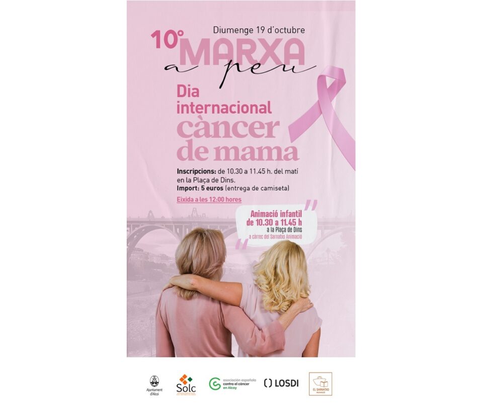 Alcoi acollirà aquest diumenge, 19 d’octubre, la desena edició de la Marxa a Peu contra el Càncer de Mama, una cita ja consolidada en el calendari local que combina solidaritat, conscienciació i suport a les persones afectades per aquesta malaltia.