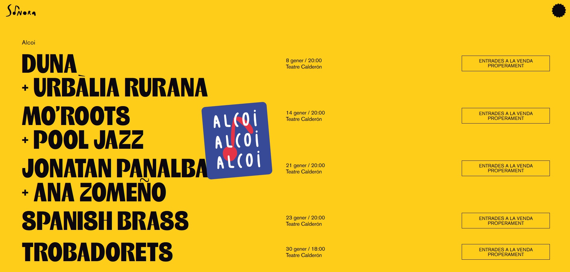 «A més de l’àmplia i variada programació cultural de qualitat que tenim a la nostra ciutat, agraïm que Sonora, arribe a Alcoi també. És una molt bona manera de concloure l’any de la capitalitat cultural amb 8 concerts en 5 dies, de referents de la música en valencià, tan grups que comencen com altres amb una llarga trajectòria», ha ressaltat el regidor de Cultura, Raül Llopis.