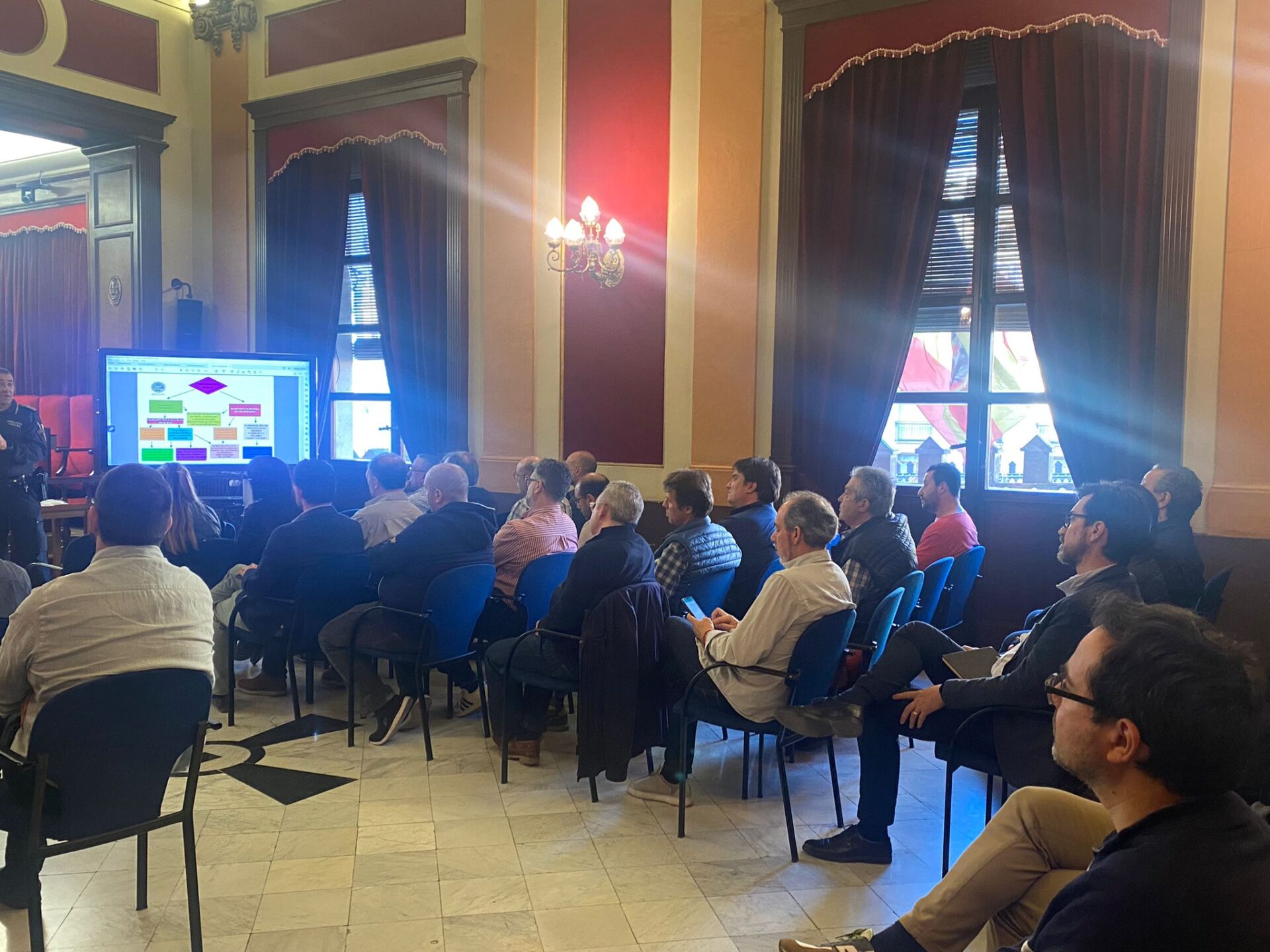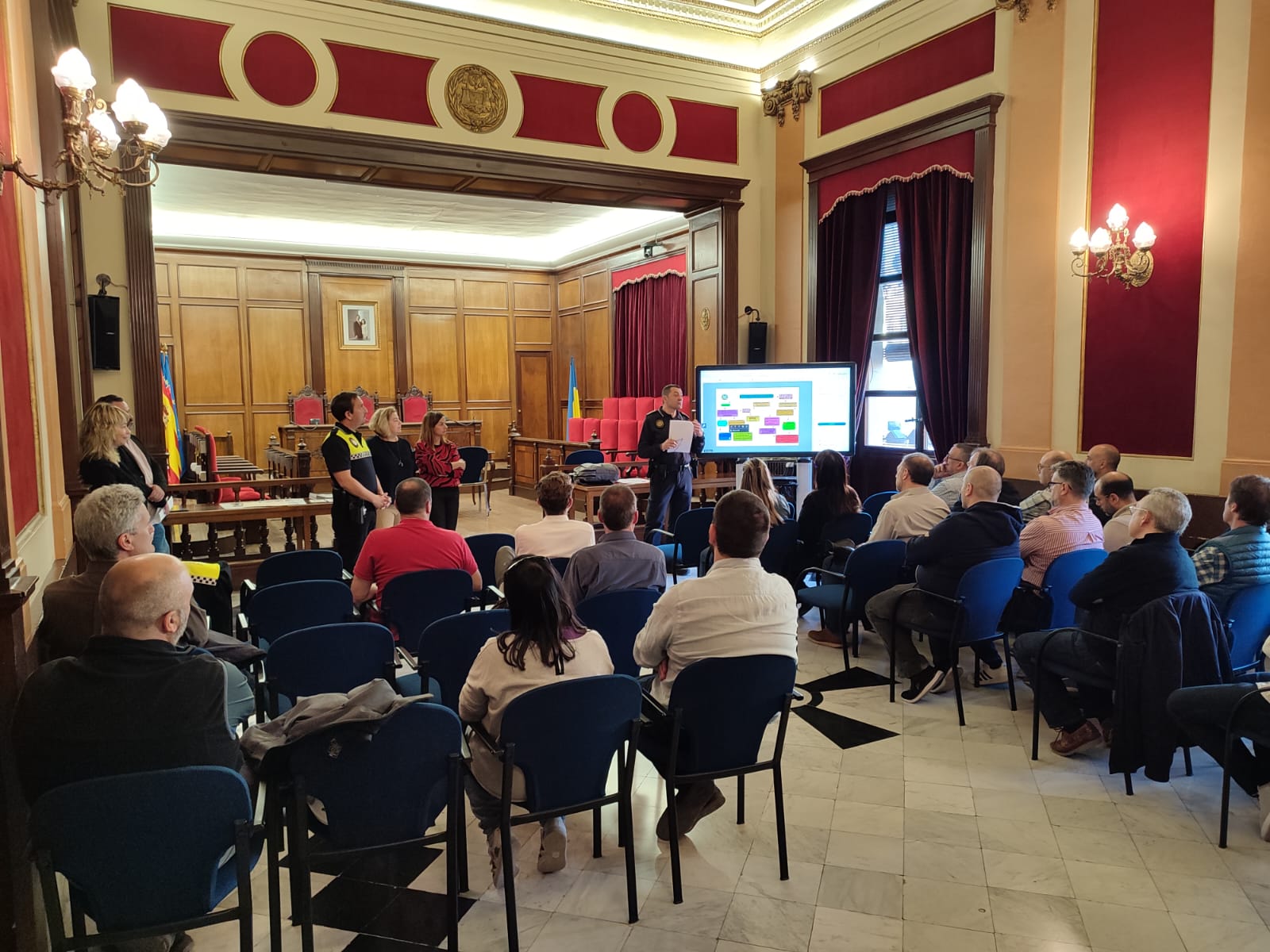 La setmana passada va tindre lloc una reunió en la qual representants de la UVID. La Unitat contra la Violència Domèstica i Delictes d’Odi de la Policia Local d’Alcoi va informar sobre com actuar en aquests casos a les persones assistents que van ser la pràctica totalitat de Primers Trons de les filaes, representants dels establiments hostalers de restauració i oci nocturn, taxistes, empreses de seguretat privada i personal dels Departaments d’Igualtat, Festes, Esports i Polítiques Inclusives.