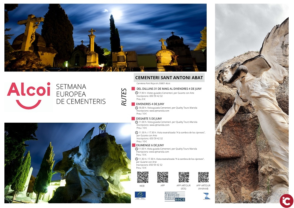 Recordem que Alcoi compta amb material promocional del cementeri en diferents idiomes i de diverses APP per a realitzar una visita guiada del recinte guardonat amb diversos premis per part de diferents certàmens.