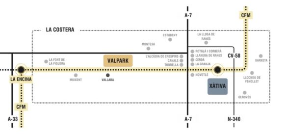 Garantizar la conexión directa de todo el sistema industrial de las Comarcas Centrales a la red del Corredor Mediterráneo mediante el impulso de Valpark (Vallada), poniendo esta gran plataforma logística al servicio del tejido empresarial del territorio.