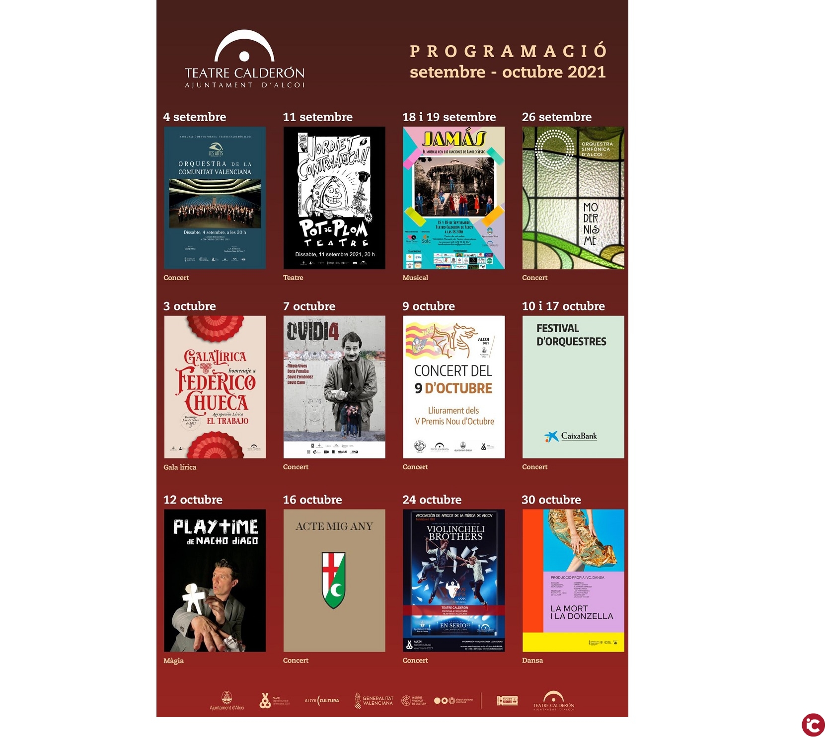 “Ací tenim un xicotet avanç, estem treballant en més actuacions de tota mena. El Teatre Calderón va abaixar el teló una mica més prompte de l’habitual per a donar pas als espectacles i concerts al carrer durant l’estiu, però tornarà més prompte que mai. Ja tenim un avanç de què ens podrem trobar, tenim una programació potent i variada, en la qual també tenen cabuda les entitats locals, amb concerts, teatre, dansa, màgia, una gala lírica i un musical”, ha indicat el regidor de Cultura, Raül Llopis.