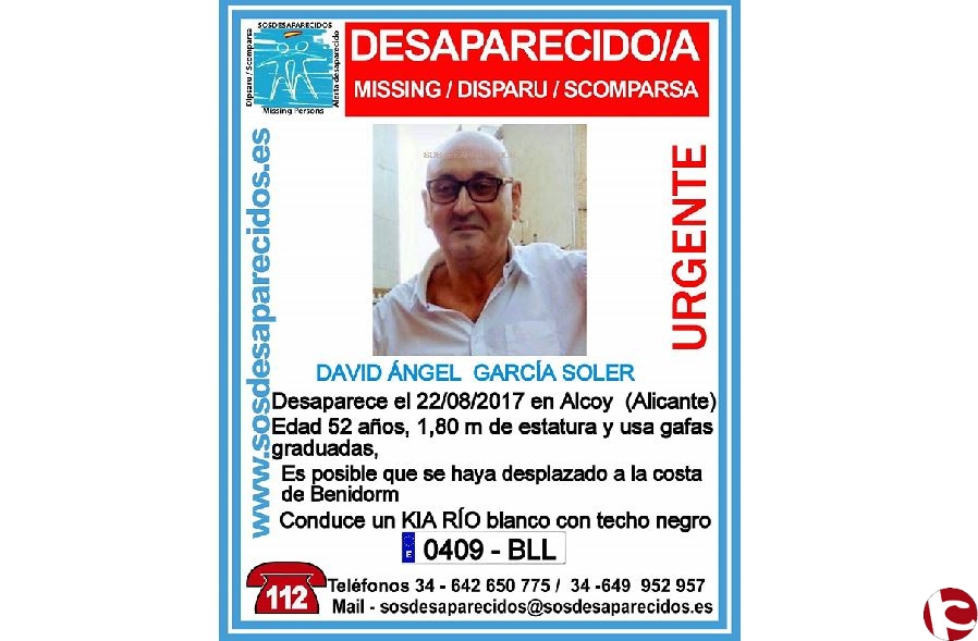 Desaparecido el ciudadano alcoyano David Ángel García Soler