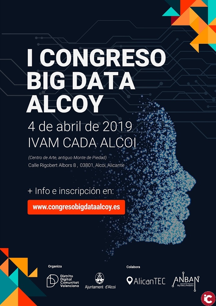Districte Digital Comunitat Valenciana, en col•laboració amb l’Ajuntament d’Alcoi, organitza el dijous 4 d’abril el «Congrés Big Data Alcoi». Una cita que inicia la seua primera edició amb la ferma intenció de convertir-se en un fòrum anual on professionals de referència, empreses digitals, líders de la indústria tecnològica, responsables de grans projectes, etc. compartisquen la seua visió i debaten sobre tendències, reptes i oportunitats per al tractament i anàlisi de dades. Aquesta jornada tecnològica – divulgativa compta amb el suport de l’Associació d’empreses tecnològiques de la província d’Alacant, AlicanTeC i amb l’assessorament d’ANBAN (Associació Nacional de Big Data i Analytics).