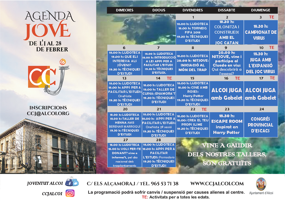 El CCJ presenta una completa agenda d’activitats per al mes de febrer