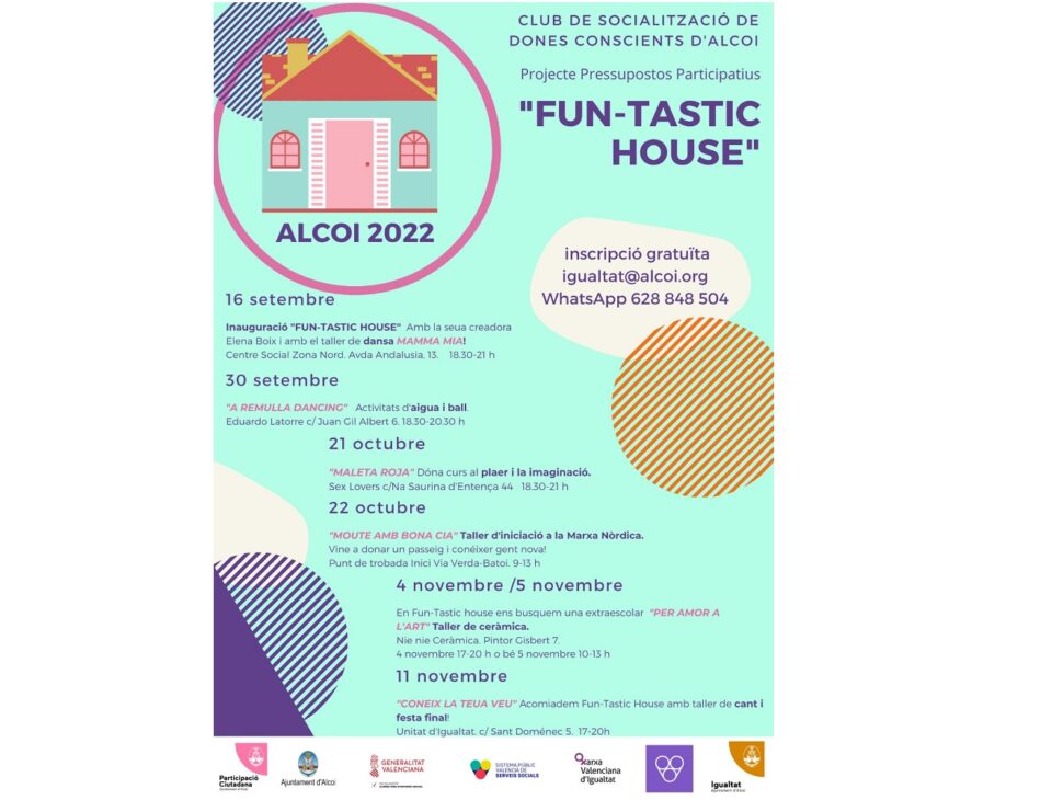 ‘FUN-tastic House’ és un conjunt d’activitats/tallers contra l’ansietat i l’estrés diari. Segons indica la creadora del projecte, Elena Boix “Serà la “HAPPY HOUR” setmanal per a totes aquelles persones que diuen necessitar-lo, però mai troben el moment de dedicar-se “TEMPS” a si mateixes”.