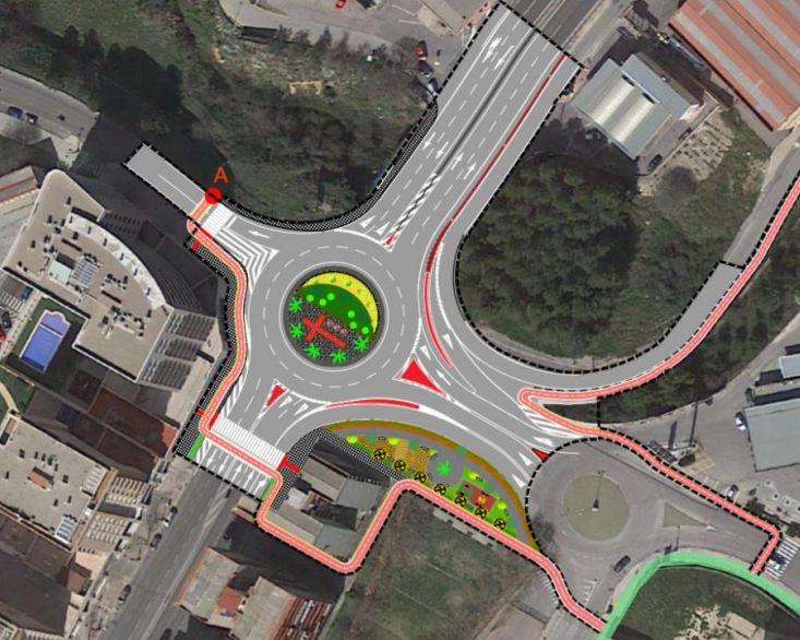 El pressupost estimat d’aquesta actuació ascendeix a 906.101 euros i el projecte permetrà reordenar el trànsit, passant de la intersecció giratòria partida existent a una glorieta tancada. A més, es dota a tot l’entorn de voreres d’un ample mínim de 1,80 metres i s’inclou un carril bici de 2 metres d’ample al llarg del contorn de la glorieta.