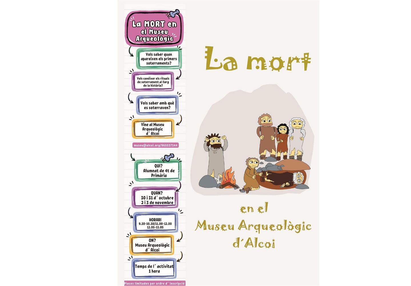 L’activitat s’anomena ‘La mort en el Museu Arqueològic d’Alcoi’ i consisteix en unes visites organitzades d’una hora en la qual, entre d’altres els explicaran quan apareixen els primers soterraments, quins eren els rituals al llarg de la història o amb què soterraven, entre d’altres.