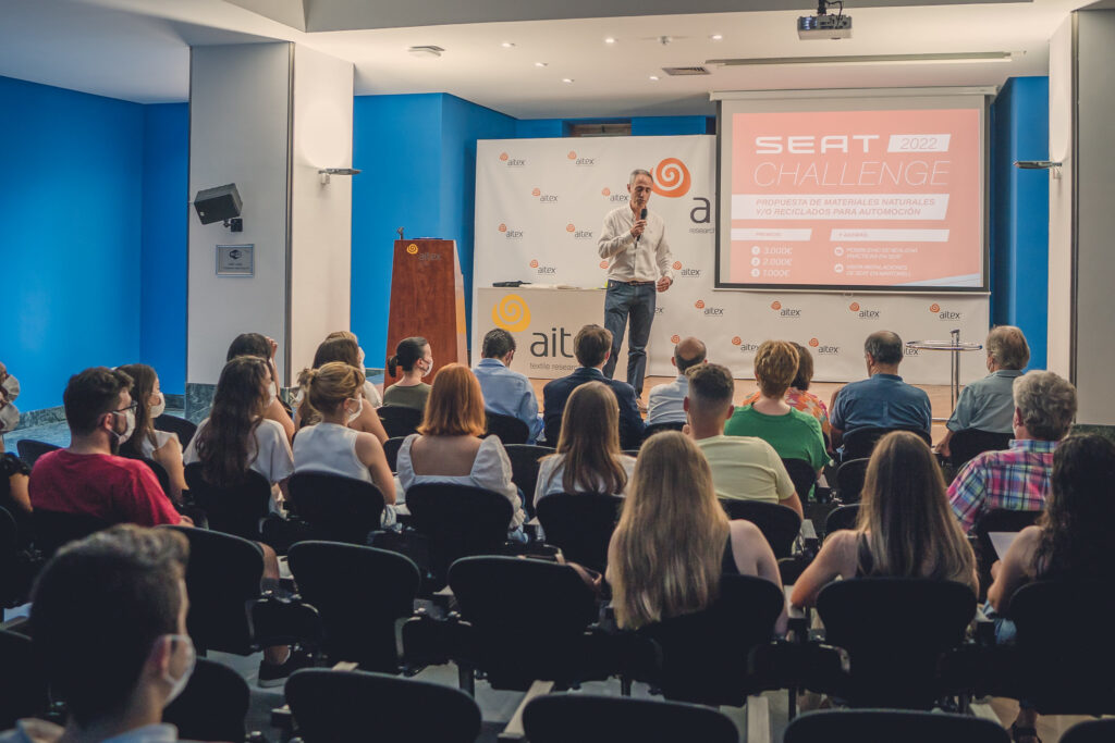 | El Repte SEAT Challenge 2022, organitzat per la Càtedra AITEX – UPV, arriba a la seua fi. Les instal·lacions d’AITEX han acollit la semifinal d’aquest repte que té com a objectiu premiar les millors idees innovadores relacionades amb el tèxtil enfocades a la utilització de materials naturals i la seua aplicació en el sector automòbil.