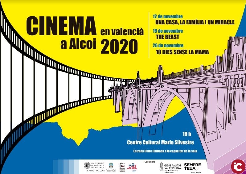 La Universitat Politècnica de València (Campus d’Alcoi) i l’Ajuntament d’Alcoi (Regidoria de Política Lingüística) organitzen el cicle de Cinema en Valencià a Alcoi 2020, que tindrà lloc el 12, 19 i 26 de novembre, a les 19 h, al Centre Cultural Mario Silvestre d’Alcoi, adreçat al públic adult en general.