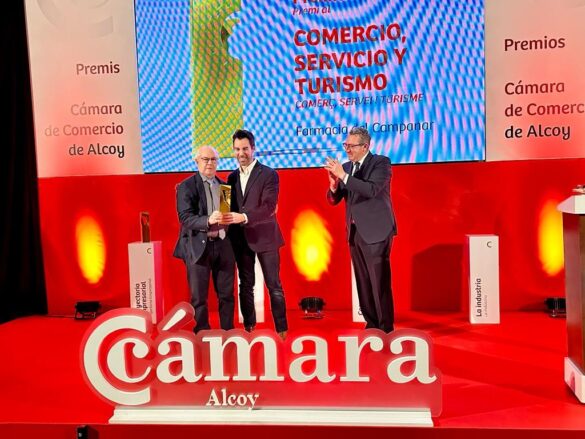Durante el transcurso del acto, al que también ha asistido el diputado provincial Carlos Pastor, el presidente ha hecho entrega del Premio al Comercio, Servicio y Turismo a la Farmacia del Campanar, por sus más de 275 años con la misma actividad en el mismo local, por la innovación e incorporación de nuevos productos, por su inversión en tecnología y por la utilización de diversos canales en su gestión comercial.