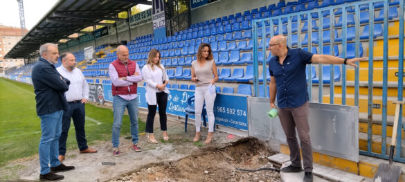 El vicealcalde i regidor d’Obres, Jordi Martínez, juntament amb personal tècnic de l’Ajuntament i el president del CD Alcoyano, Antonio Justicia, van visitar les obres per conéixer de primera mà en quina situació es troben.