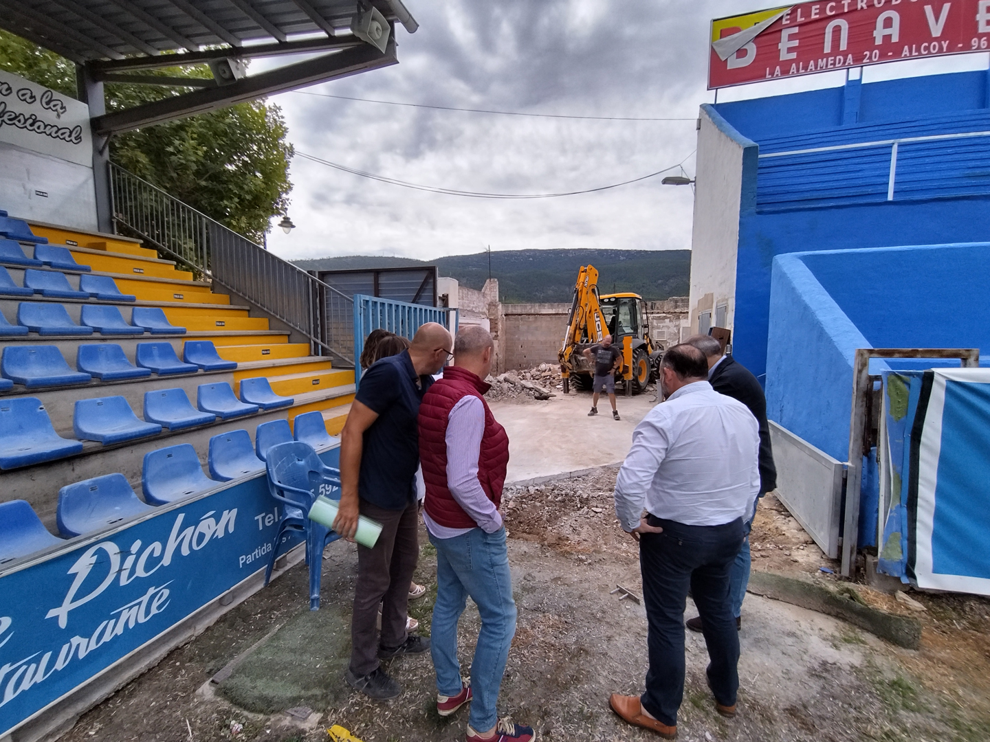 El vicealcalde i regidor d’Obres, Jordi Martínez, juntament amb personal tècnic de l’Ajuntament i el president del CD Alcoyano, Antonio Justicia, van visitar les obres per conéixer de primera mà en quina situació es troben.